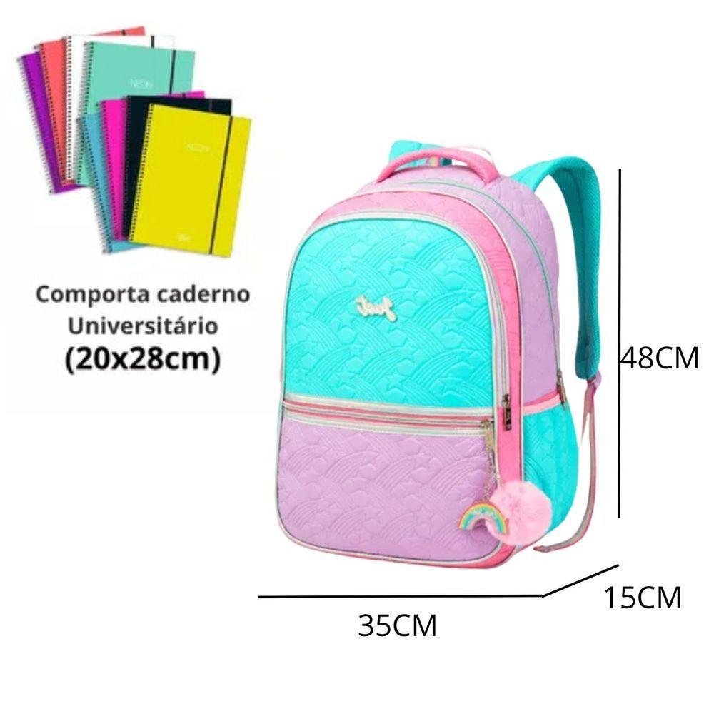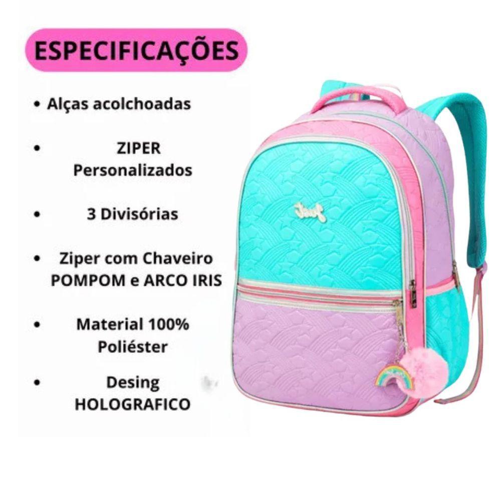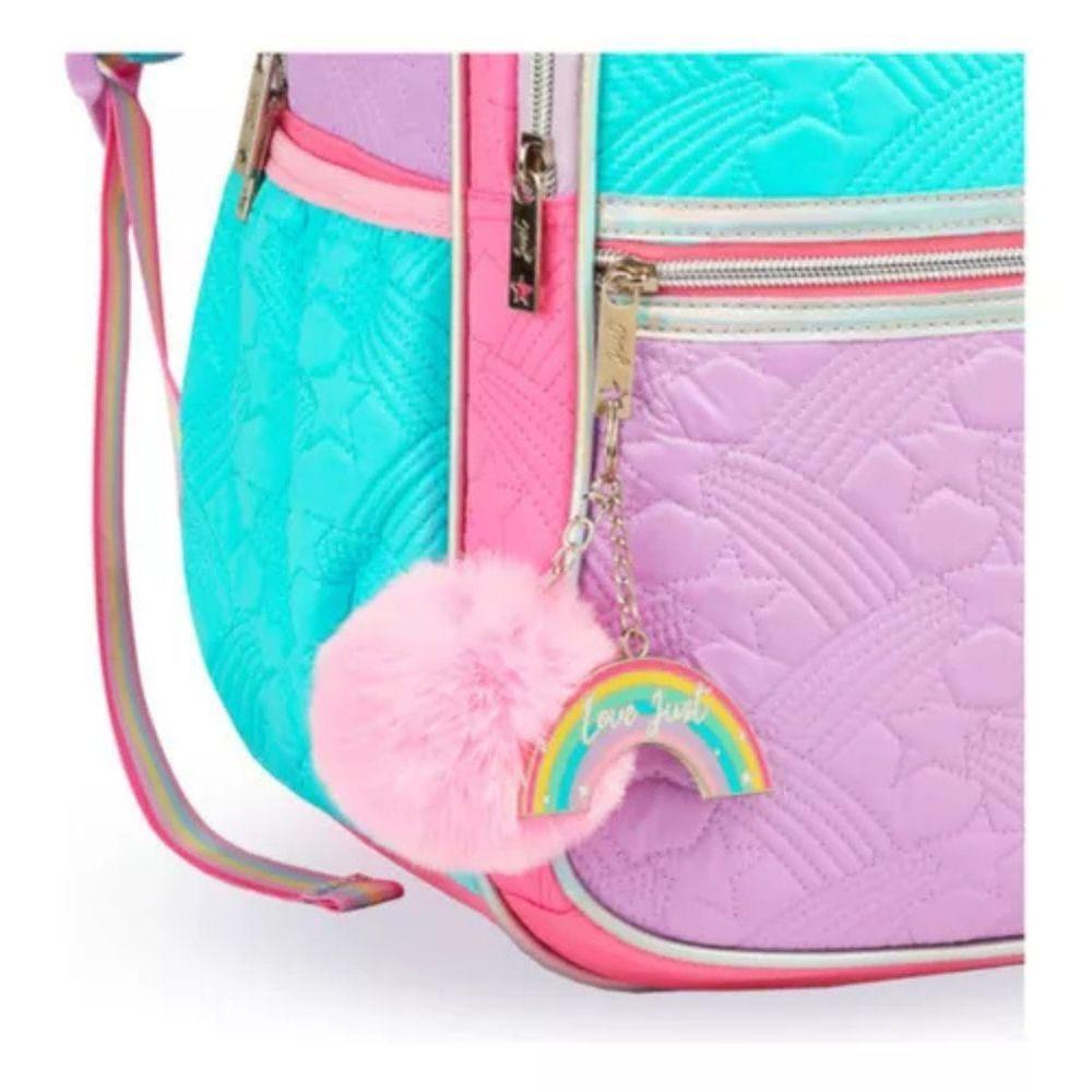 Mochila Costas Infantil Juvenil Love Estrelas Pompom Chaveiro Escolar Just Menina Denlex