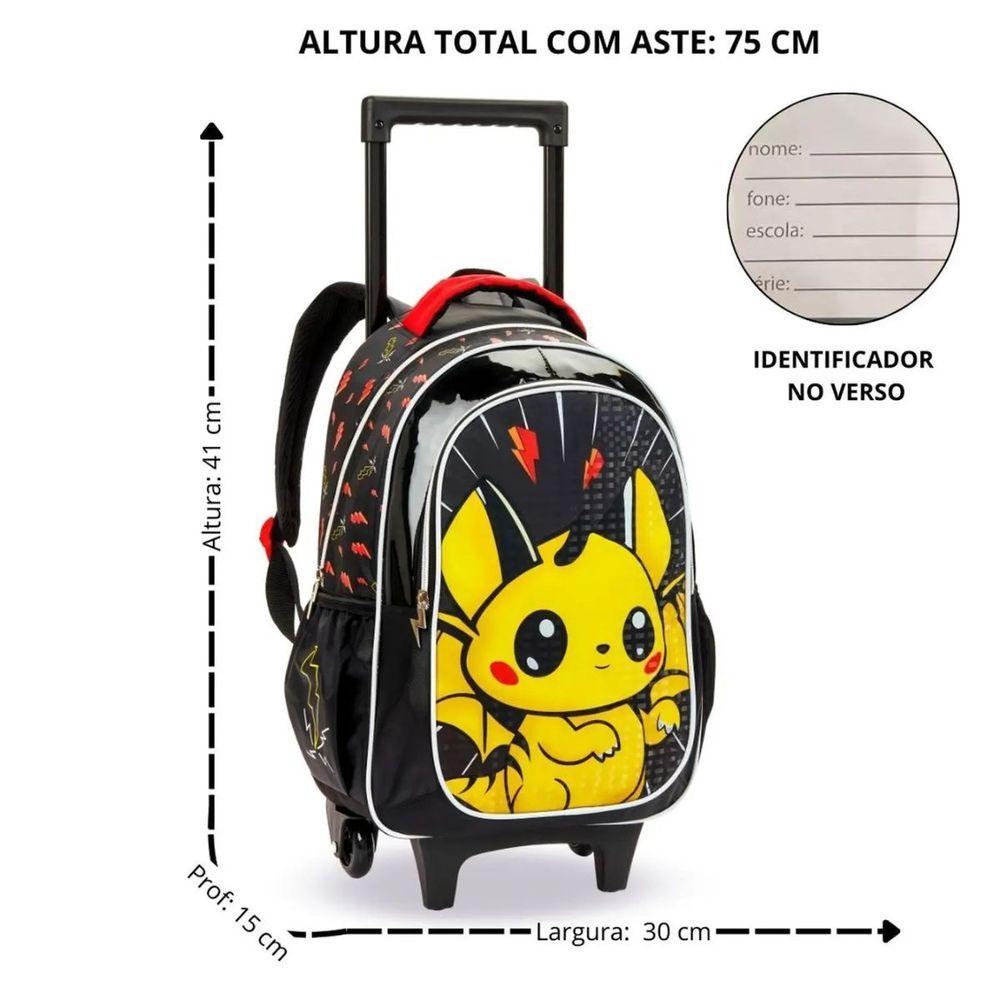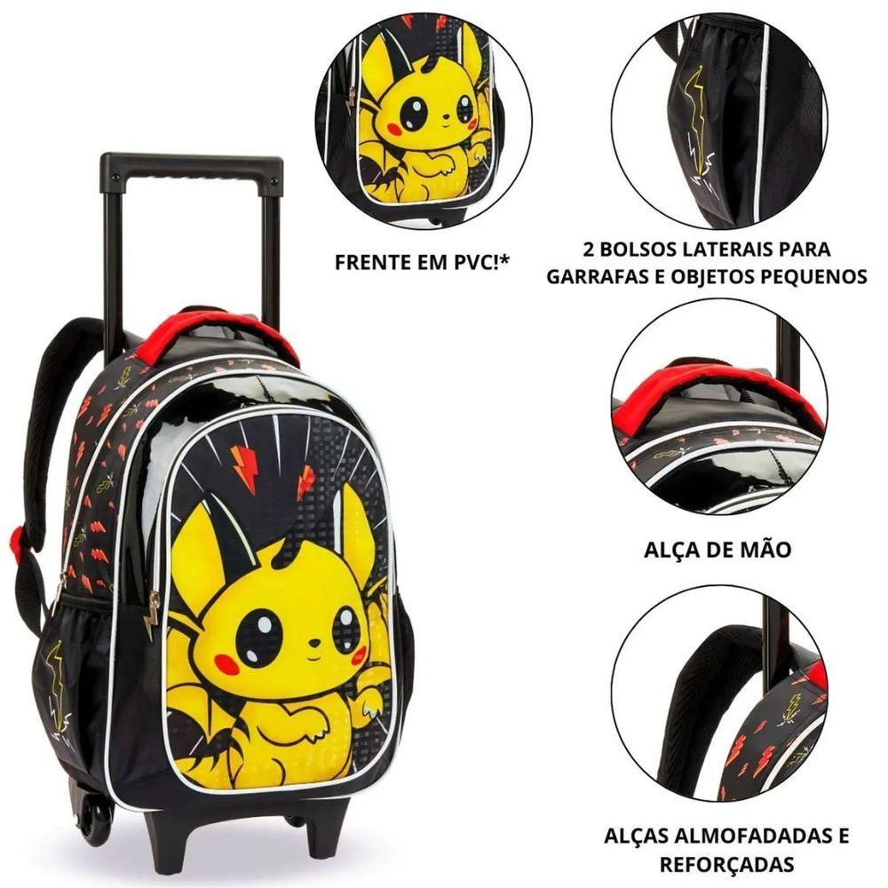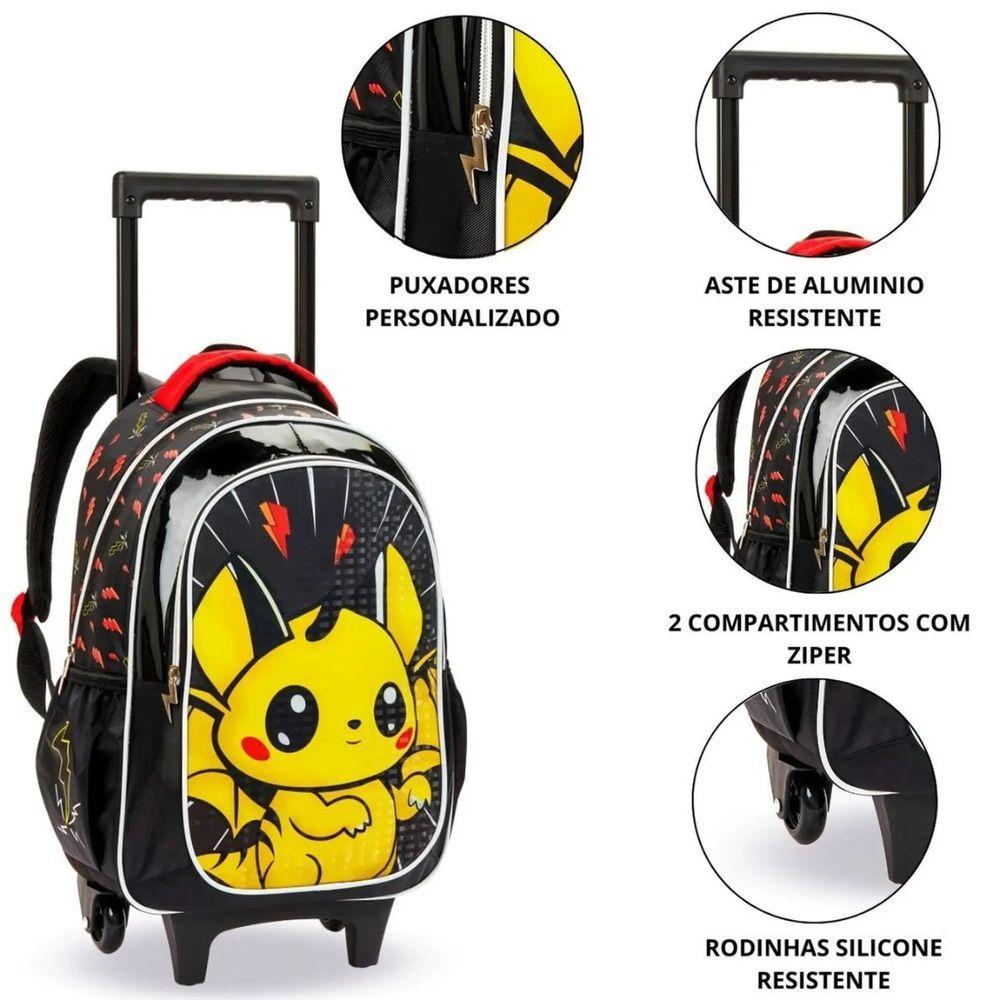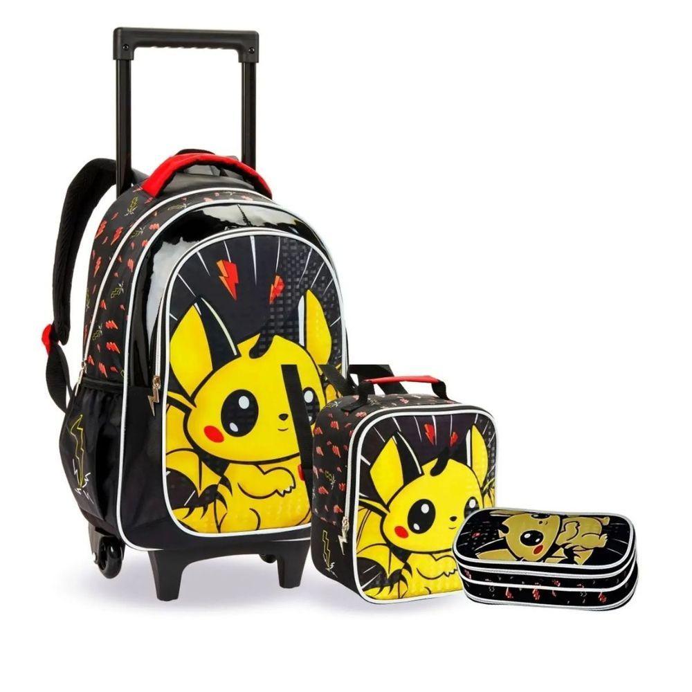 Kit Mochila Rodinhas Lancheira Infantil Pikachu Pokémon Escolar Estojo Denlex