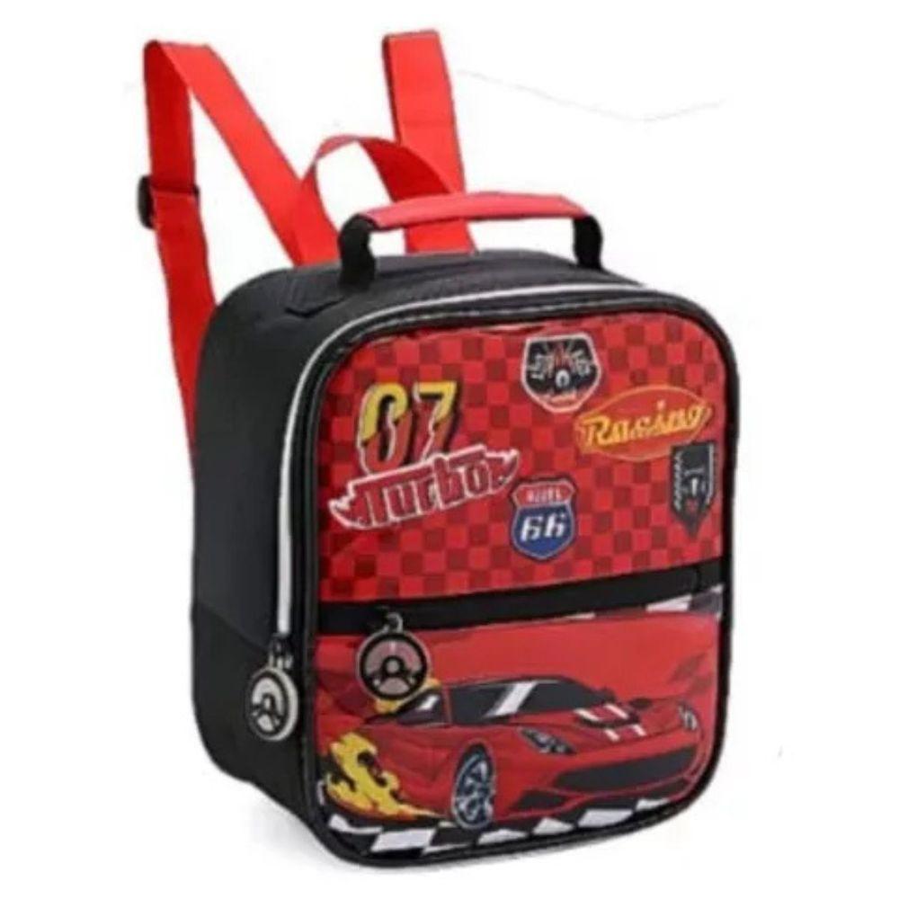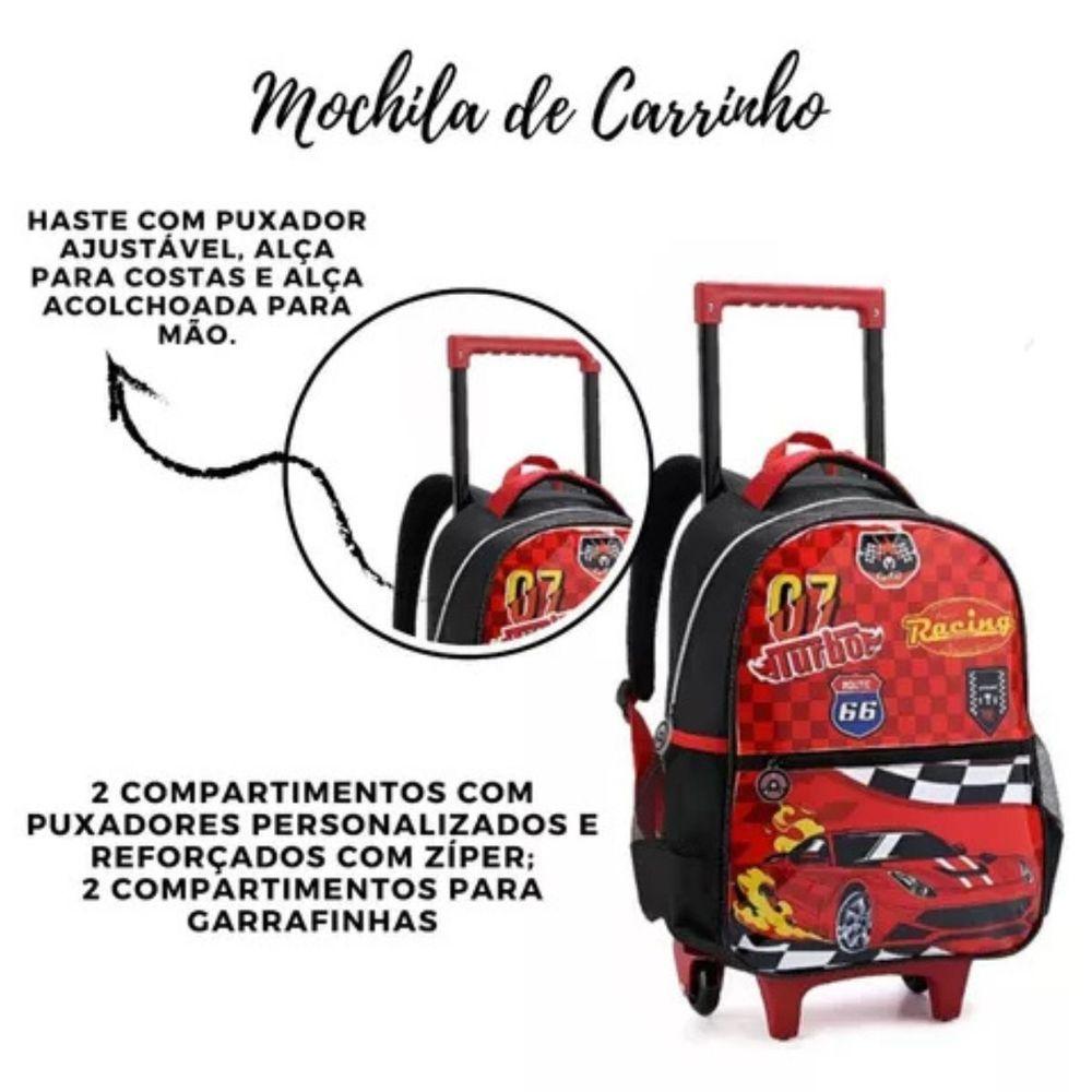 Kit Mochila Rodinhas Carro Turbo 07 Estojo Lancheira Escolar Racing Infantil Denlex