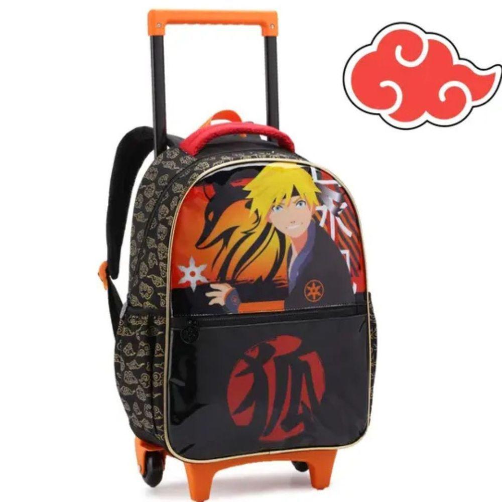 Kit Mochila Rodinhas Naruto Estojo Lancheira Infantil Escolar Menino Denlex