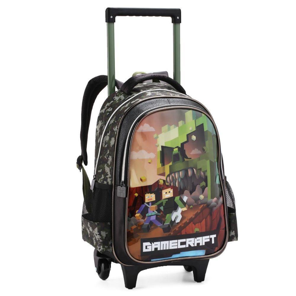 Kit Mochila Rodinha Lancheira Estojo Escolar Infantil Minecraft
