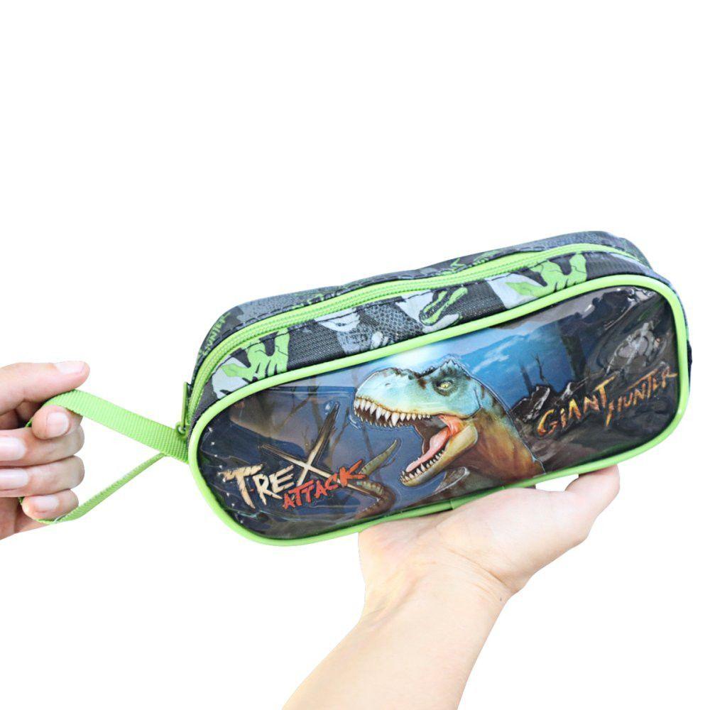 Estojo Escolar T-rexPerfeito para organizar os materiais escolares com estilo, esse estojo com estampa de T-Rex é a escolha perfeita!Com um design vibrante de T-Rex, conta com compartimento espaçoso, oferecendo espaço adequado para lápis, canetas e outros materiais essenciais. O fecho seguro mantém os itens de forma organizada e que não caia, garantindo que tudo esteja à mão quando necessário.Feito com materiais de ótima qualidade, é resistente e durável, perfeito para seu utilizado no dia a dia escolar. *CUIDADOS:-Limpar utilizando apenas um pano úmido com sabão neutro;-Não recomendado para crianças menores de 03 anos por conter partes pequenas que podem ser engolidas ou aspiradas. ESPECIFICAÇÕES:Materiais:PoliésterDimensões: Alt. 10cm x Comprimento: 23cm x Larg.: 7cmPeso: Aprox. 60gCores: Verde estampa do T-Rex CONTÉM:01 ESTOJO ESCOLAR T-REX - VERDE