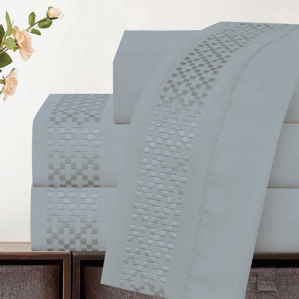 Jogo De Lençol Queen Quadratto Bordado 300 Fios Micropercal 4 Peças Cinza - 100% Poliester