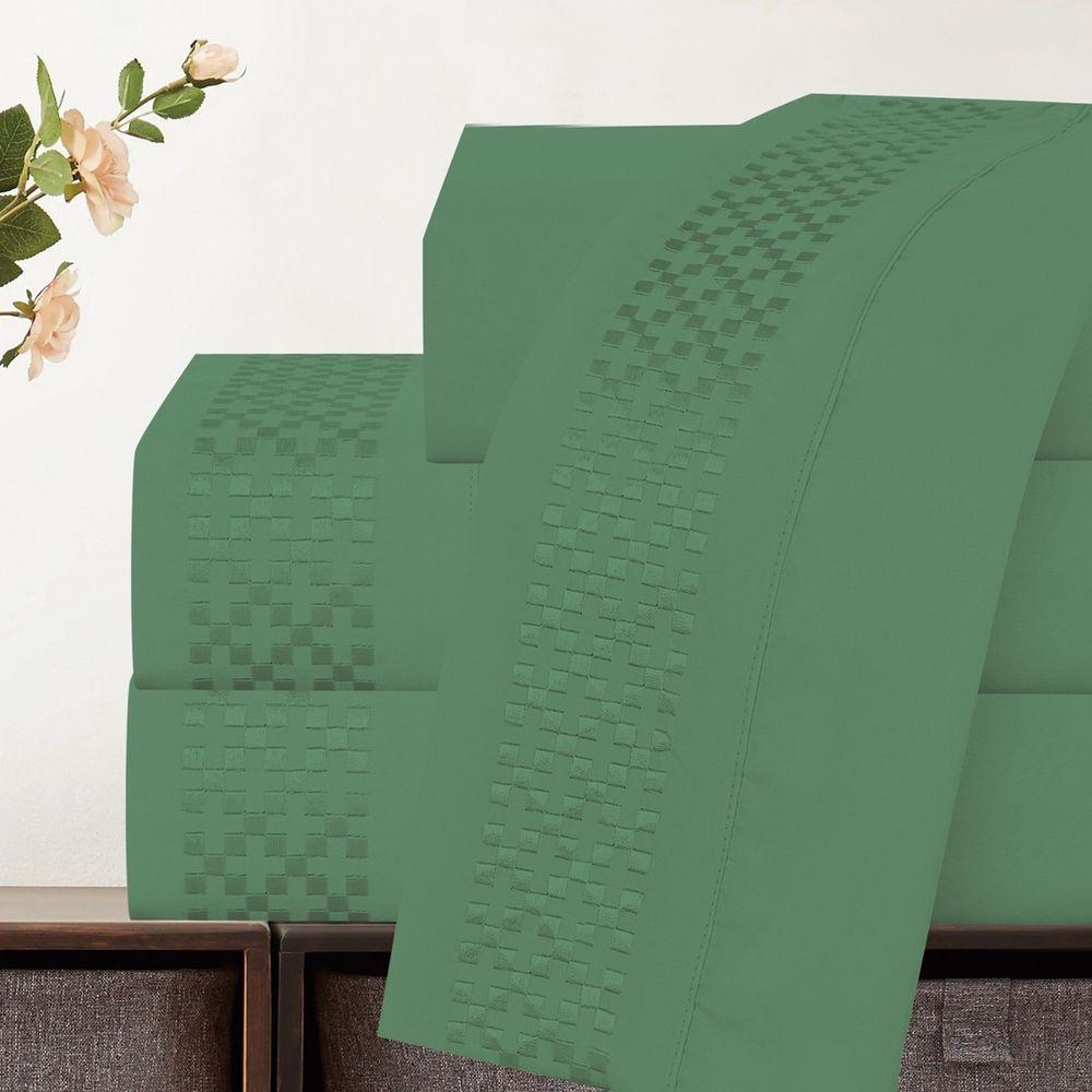 Jogo De Lençol Casal Quadratto Bordado 300 Fios Micropercal Toque De Algodão 4 Peças - Verde - 100% Poliéster