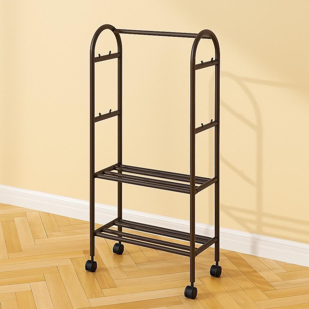 Arara Guarda Roupas Estante 2 Prateleiras Carrinho Organizador Cabideiro Quarto Vestiario Sapateira