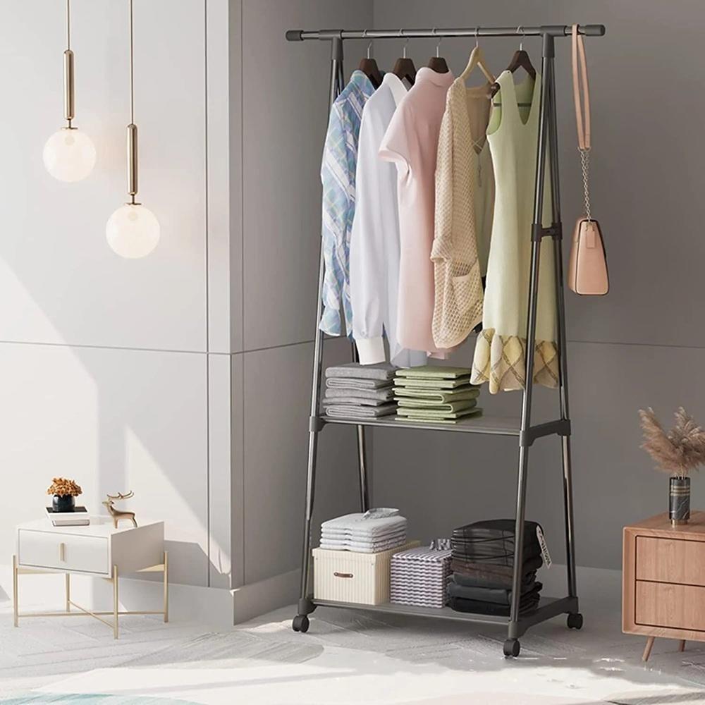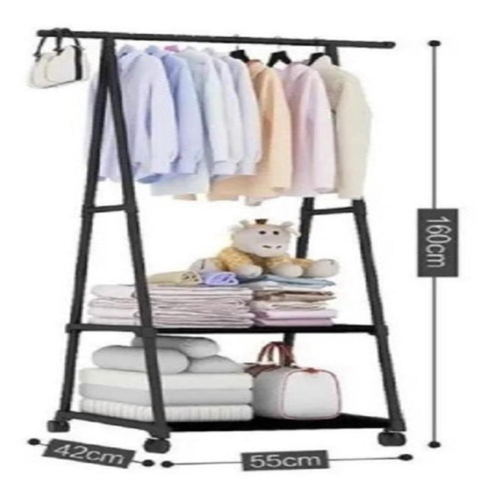Armario Portatil Arara Roupas 2 Prateleiras Carrinho Guarda Sapateira Rodinhas Organizador Preto
