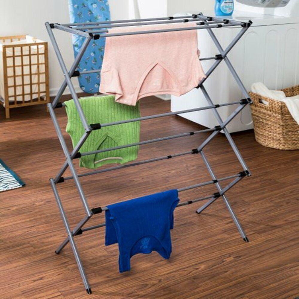 Varal Chao Secador Roupas Dobravel Telescopico Vertical Extensivel Com 11 Grades Portatil