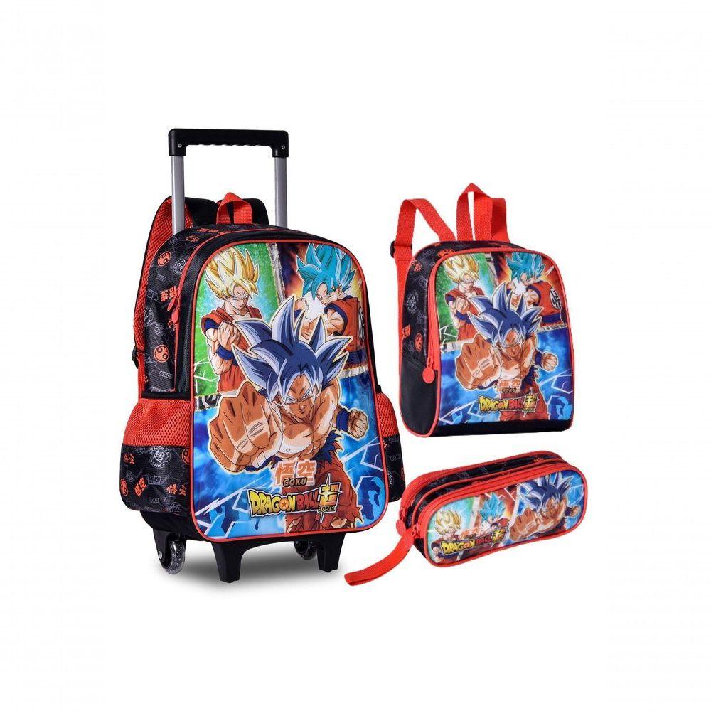 Kit Mochila Dragon Ball Super Carrinho Azul 40x30x13cmKit Mochila Dragon Ball Super De Carrinho Lancheira E Estojo - Clio StyleChegou o Kit Mochila Dragon Ball Super de Carrinho Lancheira e Estojo da Clio Style, perfeito para a volta às aulas. Com estampa do famoso anime Dragon Ball Super, o kit traz as aventuras de Goku e seus amigos em busca da paz na Terra.A Mochila de Rodinhas é confeccionada em poliéster com frente em PVC com efeito metálico. Possui alças acolchoadas de costas que facilitam o transporte, compartimentos externos para guardar materiais e rodinhas de silicone. Além disso, a mochila conta com alça de mão, bolso frontal e zíper personalizado.A Lancheira Térmica possui alças reguláveis e mantém os alimentos frescos por mais tempo. Já o Estojo Duplo, com zíper personalizado e alça de mão, é perfeito para guardar todos os materiais de forma organizada.Especificações:- Marca: Clio Style- Tamanho Mochila: 40 x 30 x 13 cm- Tamanho Estojo: 9 x 6 x 21 cm- Tamanho Lancheira: 23 x 11 x 20 cm- Capacidade: 17 L- Material: Poliéster com frente em PVC com efeito metálico- Referência Mochila: DB23105K- Referência Estojo: DB23108F- Referência Lancheira: DB23107LO Kit Mochila Dragon Ball Super De Carrinho Lancheira E Estojo é perfeito para os fãs do anime que querem estar sempre preparados para a escola. Com qualidade Clio Style, garanta já o seu kit e tenha um material escolar durável e estiloso.Imagens meramente ilustrativas. Todas as informações divulgadas são de responsabilidade exclusiva do fabricante. Garantia de 90 dias contra defeito de fabricação.
