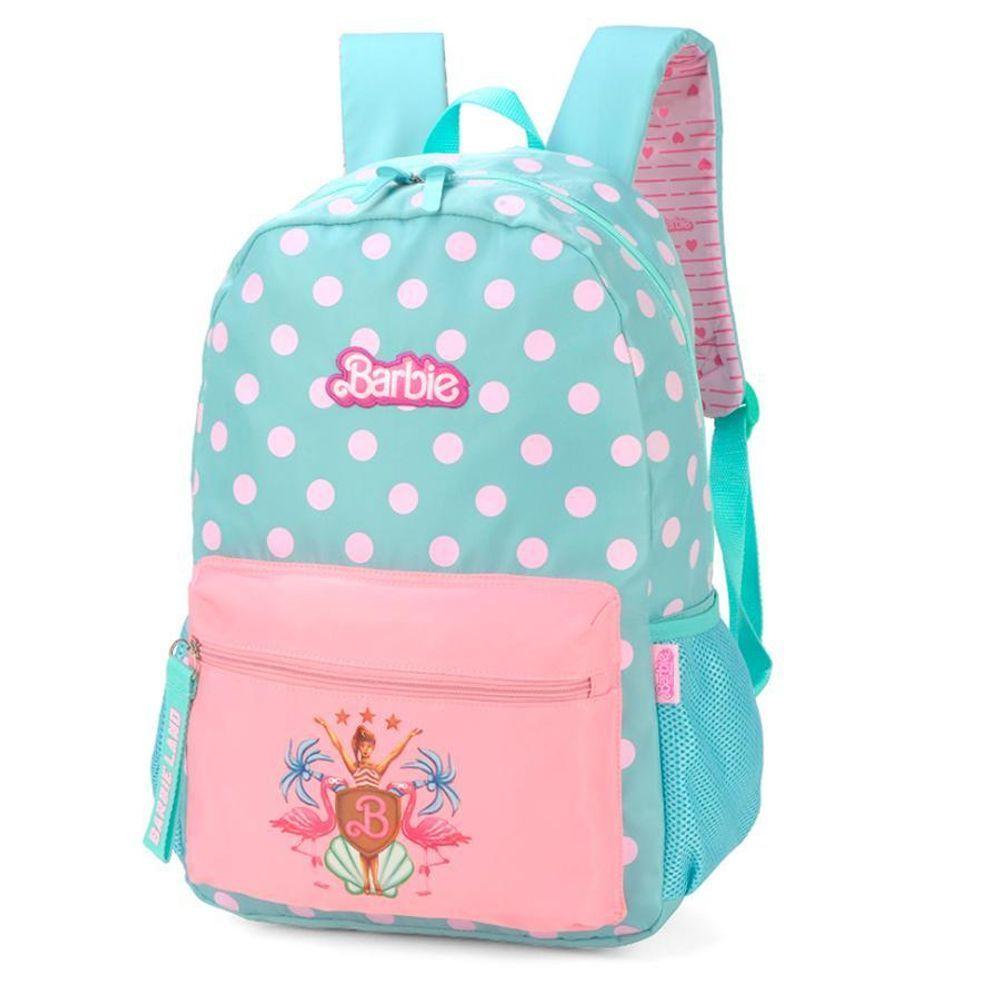 Mochila De Costas Barbie Verde E Rosa Bolinhas - Luxcel