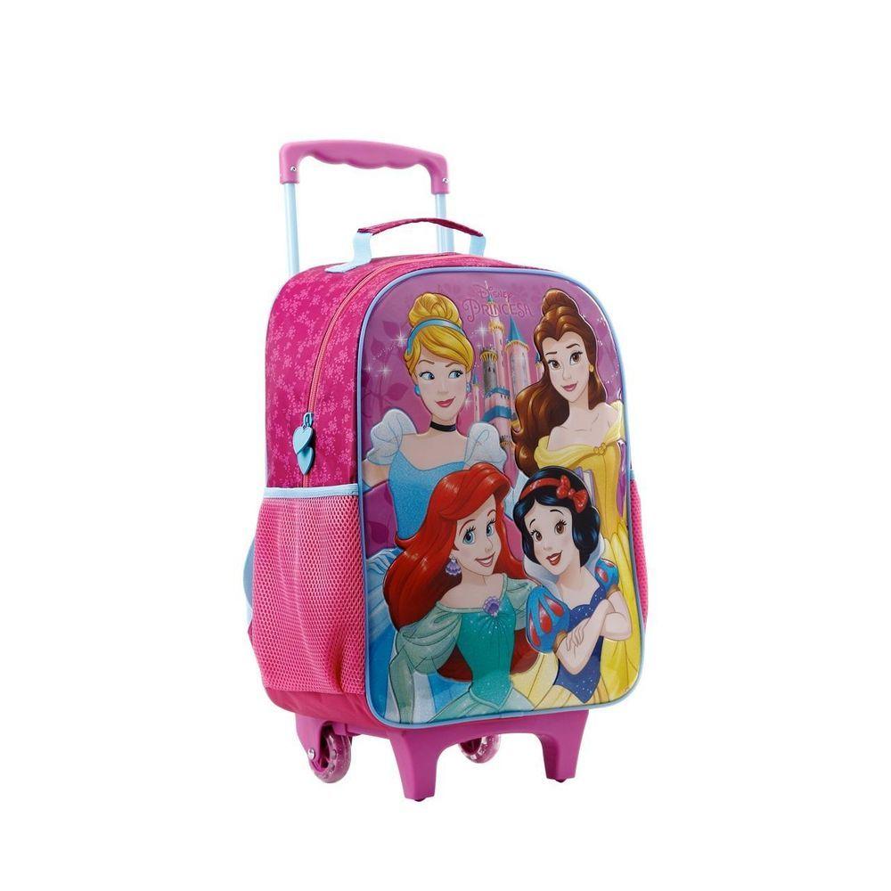 Mochila Princesas Disney Bolsa Rodinha Infantil 16l Rosa