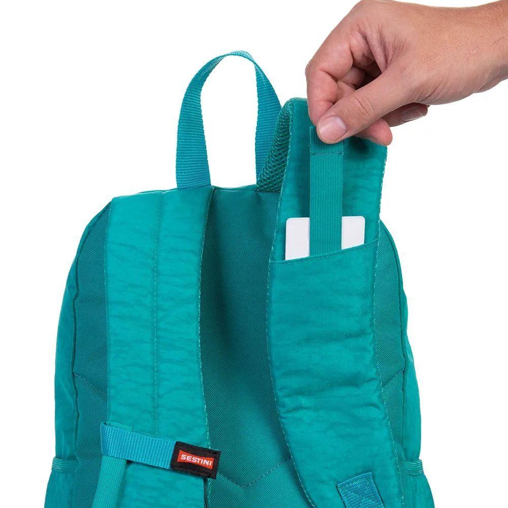 Mochila Magic Crinkle Verde Jade 44cm - SestiniMochila Magic Crinkle Verde Jade - SestiniA Mochila Magic Crinkle Verde Jade - Sestini é a escolha perfeita para quem busca praticidade e organização no dia a dia. Com um design moderno e funcional, essa mochila oferece uma combinação exclusiva de atributos que tornam o seu uso ainda mais prático.Com um bolso de rápido acesso com tira-cartão, você pode ter seus cartões sempre à mão, sem precisar revirar a mochila em busca deles. Além disso, conta com um bolso especial para celular, onde você pode armazenar o seu aparelho com segurança e facilidade.O organizador de fone de ouvido é perfeito para quem gosta de ouvir música ou fazer chamadas enquanto está em movimento. Com ele, você pode guardar os seus fones de ouvido de maneira prática e evitar que eles se embolem dentro da mochila.Outro atributo importante é o bolso escondido nas costas, que oferece um lugar seguro para você guardar objetos de valor, como carteira e documentos. Com essa mochila, você pode ficar tranquilo(a) sabendo que seus pertences estão protegidos.Os puxadores com trava especial anti-furto são um diferencial dessa mochila. Com eles, você pode ter a certeza de que ninguém conseguirá abrir a sua mochila sem que você perceba. É mais segurança e tranquilidade para o seu dia a dia.Além disso, essa nova versão da Mochila Magic Crinkle Verde Jade - Sestini conta com um bolso maior para celulares e um compartimento a mais. Com o zíper expansivo, você pode aumentar o espaço interno da mochila quando precisar transportar mais objetos.Essa mochila possui alça espumada e regulável, garantindo o máximo conforto durante o uso. Seu material é em nylon, o que confere durabilidade e resistência ao produto.Com capacidade total de 24 litros, essa mochila é ideal para uso diário e escolar. Seu tamanho grande permite que você transporte todos os seus pertences de forma prática e organizada.As dimensões da Mochila Magic Crinkle Verde Jade - Sestini são: altura de 44 cm, largura de 29 cm, profundidade de 19 cm e peso de 0,6 kg.Garanta já a sua Mochila Magic Crinkle Verde Jade - Sestini e desfrute de todos os benefícios e praticidade que ela oferece. Não perca tempo e adquira a sua agora mesmo!