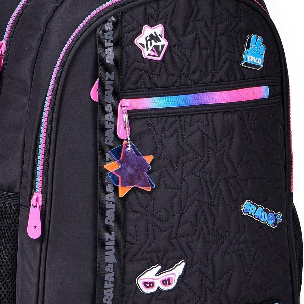 Mochila De Costas Rl24019Mochila de Costas Juvenil Oficial RAFA e LUIZ Clio RL24019Mochila de Costas Juvenil Oficial RAFA e LUIZ Clio RL24019São mais de 20 milhões de inscritos no YouTube. O conteúdo de entretenimento educacional e inspiracional agradam os seguidores que assistem aos novos conteúdos publicados todos os dias.Sucesso absoluto entre crianças e adolescentes, eles levam muita alegria aos fãs com conteúdo bastante diversificado.Acompanha um lindo chaveiro de acrílicoTamanho grande, cabe bastante material escolar para crianças maiores, adolescentes e jovens.Super confortável e muito irada Ideal para a escola, viagens ou aventuras com os amigos.Conforto Durante Todo o Dia: As alças ajustáveis e acolchoadas garantem que você possa carregar seus pertences com facilidade e conforto, mesmo durante longos dias de uso. O painel traseiro também é acolchoado para maior conforto.Durabilidade com Qualidade Clio: A Clio é conhecida por produzir produtos de alta qualidade, e esta mochila não é exceção. Ela é construída para resistir ao uso diário e durar por muito tempo.Bolso Organizador: Com bolsos internos e externos bem organizados, você pode manter seus itens essenciais acessíveis e organizados. Possui compartimento para laptop.Características:- Confeccionada em material soft com strap logado- Alças de costas acolchoadas e reguláveis- Alça de mão reforçada- Possui vários apliques de patches e matelassê no painel frontal- possui alça carona- Os puxadores dos zíperes são personalizados- Possui diversos bolsos, principal e frontais- Com compartimento para laptop- Bolsos laterais telados para garrafas e pequenos pertences- Acompanha chaveiro em acrílicoFicha Técnica:Marca: ClioModelo: RL24019Material: Poliéster resistenteDimensões: Aproximadamente 44 cm x 33 cm x 15 cmCor: PretoGarantia de 90 dias do fornecedor para defeitos de fabricaçãoPRODUTO OFICIAL LICENCIADOATENÇÃO: as tonalidades das cores do produto podem sofrer variações de percepção, de acordo com a tela do celular ou monitor, e podem variar de acordo com o lote de fabricação.