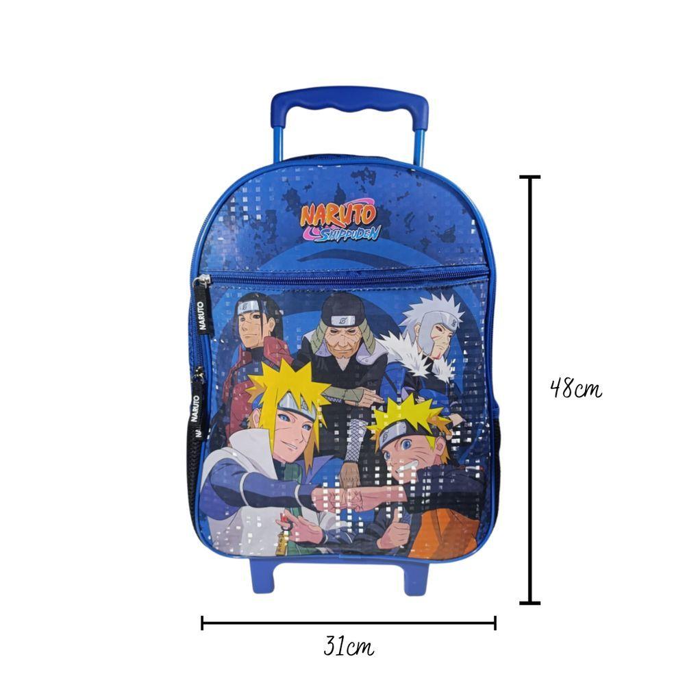 Kit Mochila De Carrinho, Estojo E Lancheira Naruto LeafKit Escolar Naruto: Mochila de Carrinho, Estojo e LancheiraEsteja preparado para a escola com o incrível kit escolar do Naruto! Composto por uma mochila de carrinho, estojo e lancheira, este conjunto traz estampas vibrantes dos grandes Hokages — Tobirama, Hashirama, Hiruzen, Minato e Naruto.Mochila de Carrinho: Feita de material durável, a mochila de carrinho possui um amplo espaço interno para acomodar livros, cadernos e outros materiais escolares. O sistema de carrinho resistente facilita o transporte, permitindo que você leve tudo com conforto e praticidade.Estojo: O estojo é ideal para organizar canetas, lápis e outros itens essenciais. Compacto e estiloso, ele complementa o visual do kit e garante fácil acesso aos seus materiais.Lancheira: Mantenha seus lanches frescos e saborosos na lancheira térmica. Com um design divertido e espaçoso, ela é perfeita para transportar sanduíches, frutas e bebidas, para que você esteja sempre preparado para uma pausa revitalizante.Este kit combina estilo, funcionalidade e amor pelo mundo ninja, tornando cada dia na escola uma verdadeira aventura!Medidas da Mochila: Altura: 48 cm Largura: 31 cm Profundidade: 13 cmMedidas da Lancheira: Altura: 23 cm Largura: 20 cm Profundidade: 10 cmMedidas do Estojo: Altura: 8 cm Largura: 20 cm Profundidade: 6 cmEspecifricações:Marca: PacificTipo de Venda: KitContém: 3 PeçasTema: NarutoCor Predominante: AzulGarantia : 3 meses contra defeitos de fabricação7899690510288