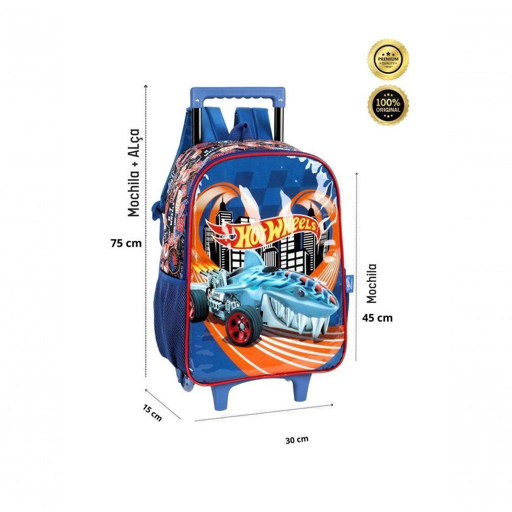 Mochila De Rodinhas Escolar Hot Wheels Ic41512 - AzulMochila Escolar Hot Wheels IC41512HW Liberte o piloto que há em você com a mochila Hot WheelsEssa mochila incrível é perfeita para os pequenos amantes de velocidade Com um design cheio de estilo e detalhes que vão encantar qualquer fã de carros, ela é ideal para o dia a dia na escola ou em aventuras radicais.Características:Estampa com carros turbinados: Os gráficos vibrantes e cheios de ação dos carros Hot Wheels vão deixar qualquer criança animada para a aventura.Alça de costas ajustável: Garante o máximo de conforto e se adapta ao crescimento da criança.Bolso lateral para garrafa: Ideal para manter a hidratação sempre em mãos durante as aventuras.Material resistente e durável: Confeccionada com materiais de alta qualidade, para acompanhar as crianças em todas as suas aventuras.Compartimentos espaçosos: Perfeito para guardar livros, cadernos e outros materiais escolares.Detalhes exclusivos: Zíperes personalizados e acabamentos de alta qualidade completam o design da mochila.Por que escolher essa mochilaDesign moderno e divertido: A mochila Hot Wheels combina estilo e funcionalidade, perfeita para meninos de todas as idades.Alta qualidade: Feita com materiais resistentes e duráveis, garantindo longa vida útil.Funcionalidade: Com diversos compartimentos e um bolso lateral para garrafa, a mochila organiza todos os pertences da criança.Presente perfeito: Surpreenda seu filho com essa mochila incrível e veja a alegria nos olhos deleCUIDADOS:-guarde em um local seco e arejado evitando locais úmidos.- Evite colocar excesso de peso no produto para não forçar os zíperes e costuras.- Proteja os objetos cortantes e/ou pontiagudos evitando o contato direto com o produto.- Evitar altas temperaturas.- Cores claras poderão manchar quando em contato com outros objetos ou roupas de cores pigmentadas.DICAS DE LIMPEZA:- Para a limpeza utilize apenas pano úmido com sabão neutro.- Não deixar de molho e secar a sombra.Palavras chaves:Mochila de rodinhas; Mochila de rodinhas hot wheels; Mochila escolar; Mochila infantil de rodinhas; Mochila com rodinhas; Mochila para menino; Mochila personalizada; Mochila com estampa; Mochila de rodinhas com bolso; Mochila infantil de rodinhas hot wheels;