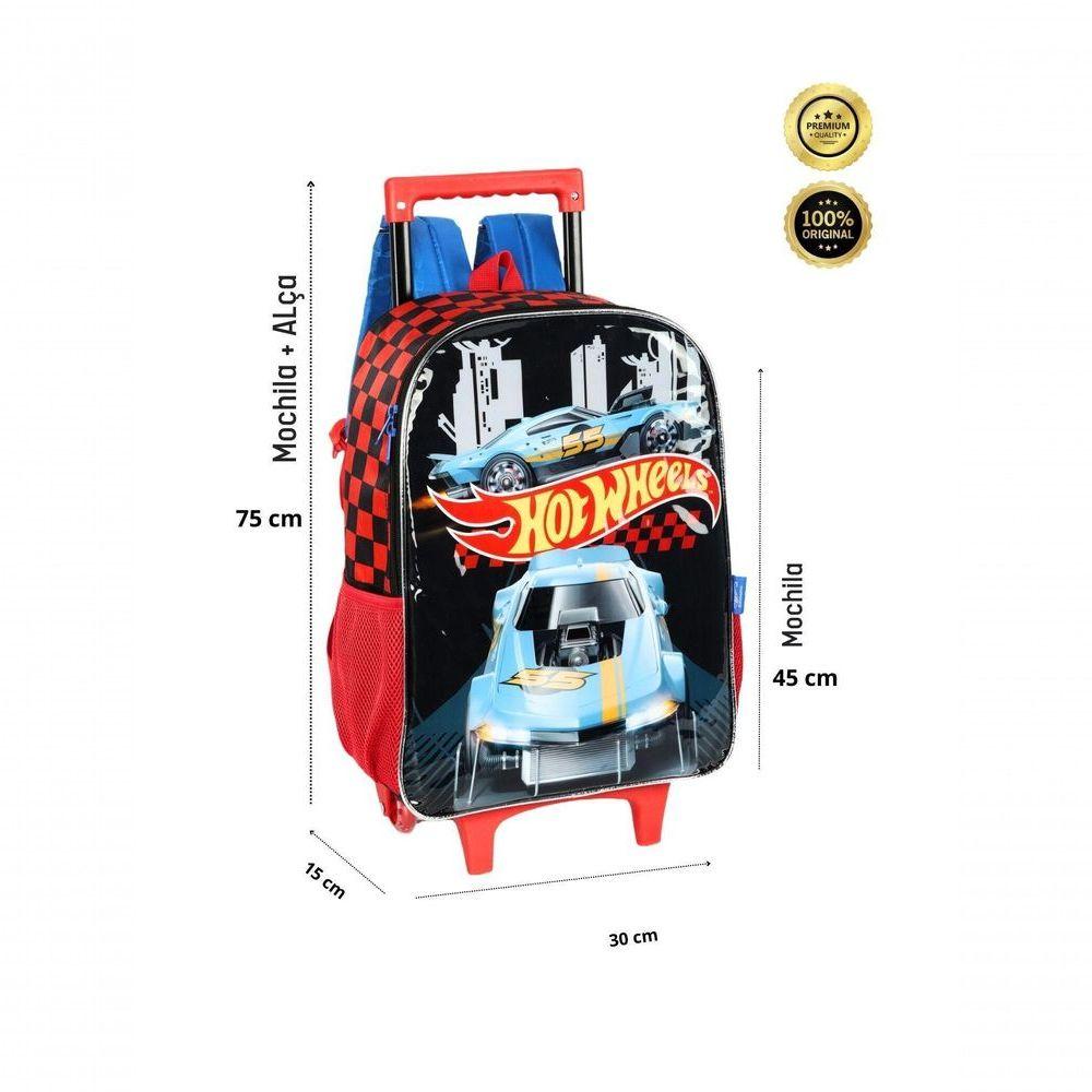 Kit Escolar Mochila De Rodinhas E Lancheira Hot Wheels-preto