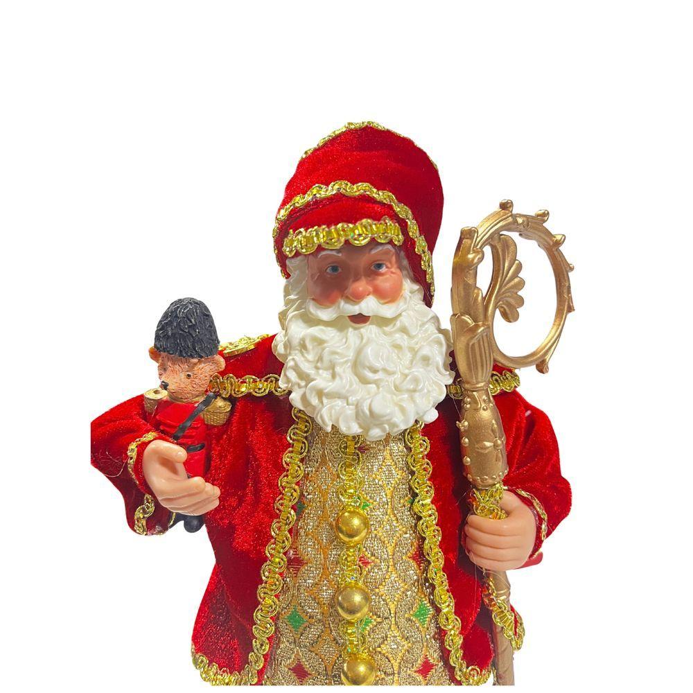 Papai Noel Colection Rei 30cm 30274Papai Noel Colection Rei 30CM 30274Traga o charme real ao seu Natal com o Papai Noel Collection Rei de 30?cm, uma peça decorativa imponente, inspirada no tema natalino dos Reis Magos, com um toque nobre e requintado.Produzido em plástico,tecido e resina de alta qualidade, este Papai Noel apresenta uma vestimenta inspirada nos trajes reais: detalhes em tons nobres como dourado, perfeito para compor vitrines, mesas de centro, lareiras ou nichos especiais, oferecendo versatilidade sem perder seu impacto visual.MEDIDAS APROXIMADAS:Altura: 30cmLargura: 17cmEspecificação Detalhe estimado Altura Aproximadamente 30?cm Materiais Plástico, tecido e resina Cores principais Vermelho com verde e detalhes dourados