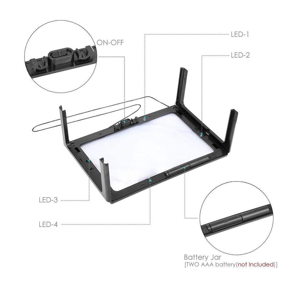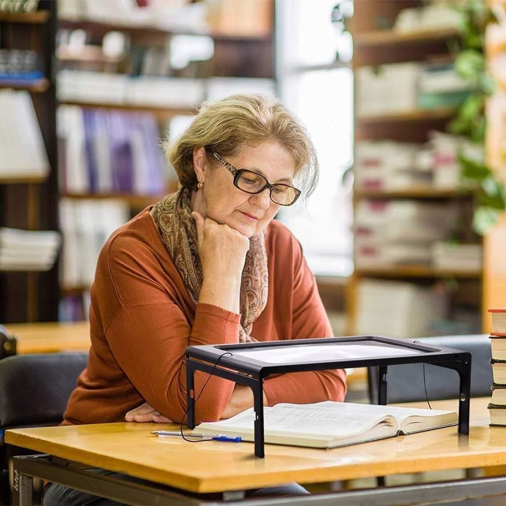 Lupa De Mesa Tamanho A4 Com Suporte Maos Livre Ampliação 3x Com Iluminação Led Lente De Aumento Para Leitura
