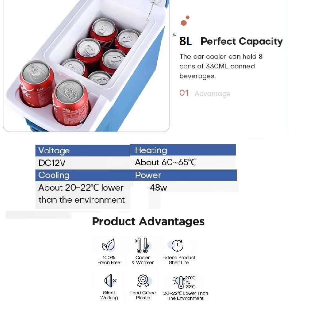 Geladeira Portatil 8L Refrigerador Aquecedor Mini Cooler 2 Em 1 Frigobar Viagem Praia Carro 12V