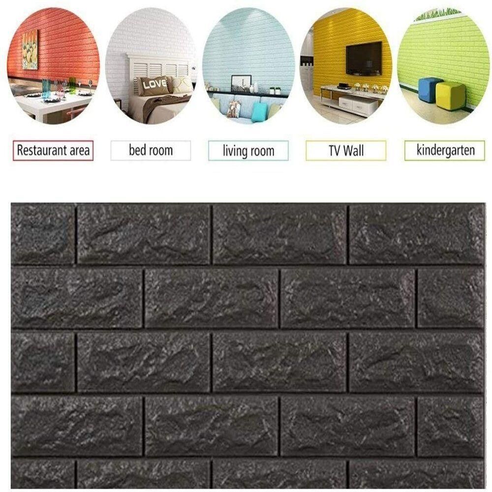 Papel De Parede Tijolinho Painel 3d Tijolo Preto Placa Auto Adesivo 77x70cm Revestimento Espuma Autocolante