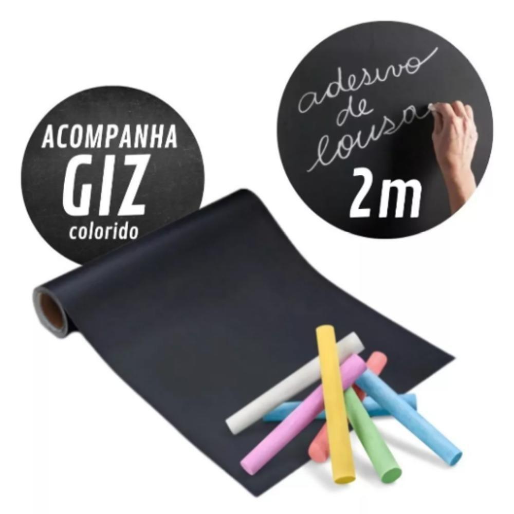 Adesivo Lousa Quadro Negro 2 Metros Papel Parede Contact Kit Completo Com Giz 2m X 45cm Preto Lavavel Escola