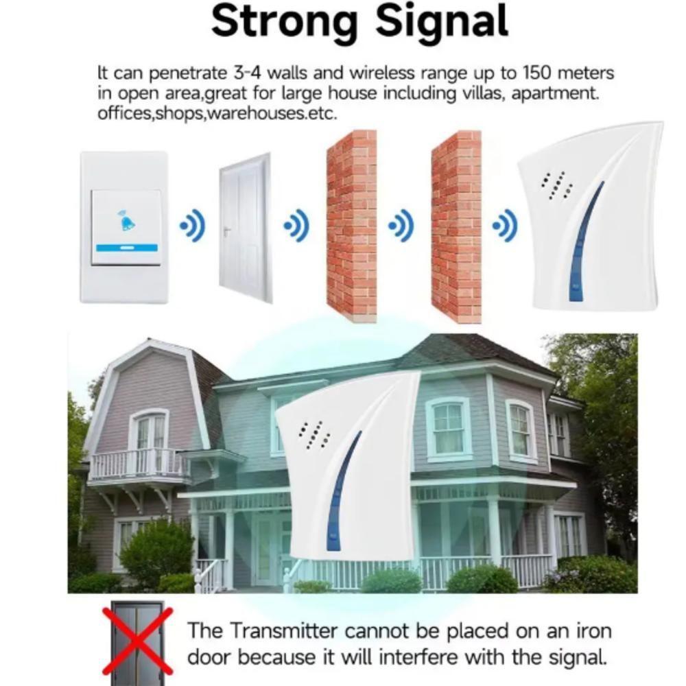 Kit Campainha Sem Fio Dupla Com 2 Receptores E Acionador 100m Com 36 Toques Longo Alcance Residencial Comercial Digital