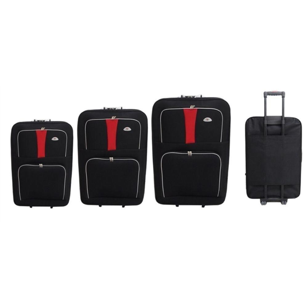 Kit De Malas Viagem Senha 3 Pecas Expansivel Bolso Frontal Carrinho Tamanho P M G Preto
