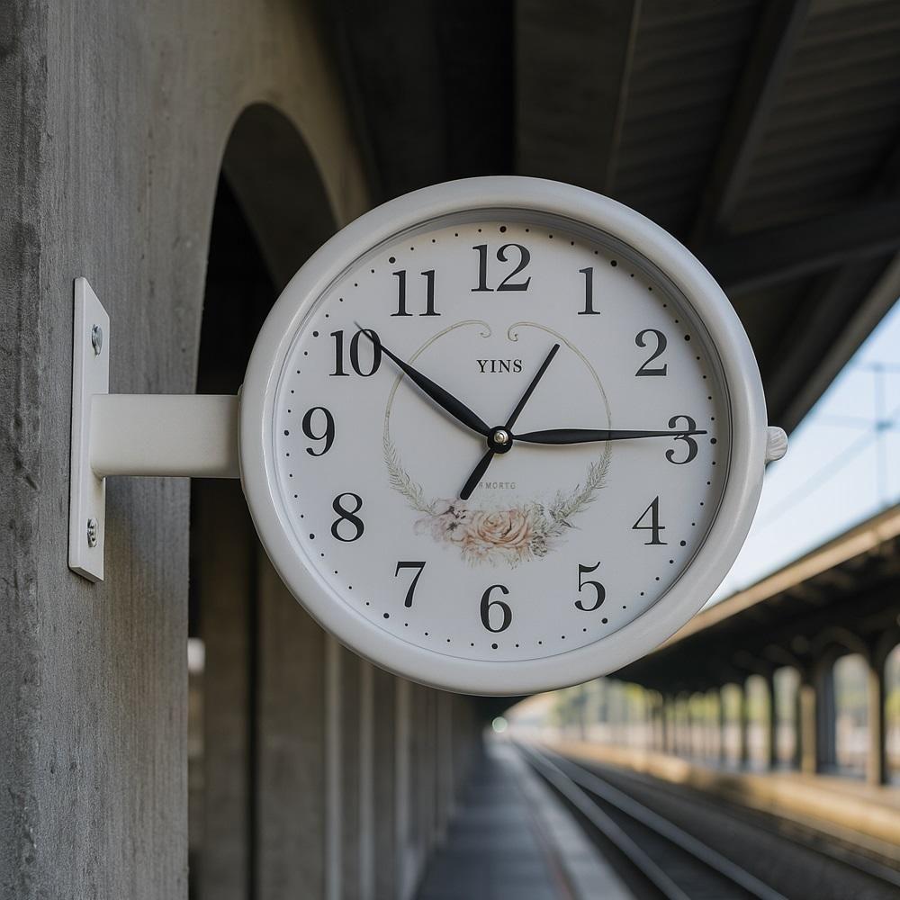 Relógio De Parede Dupla Face Vintage Estação De Trem Branco