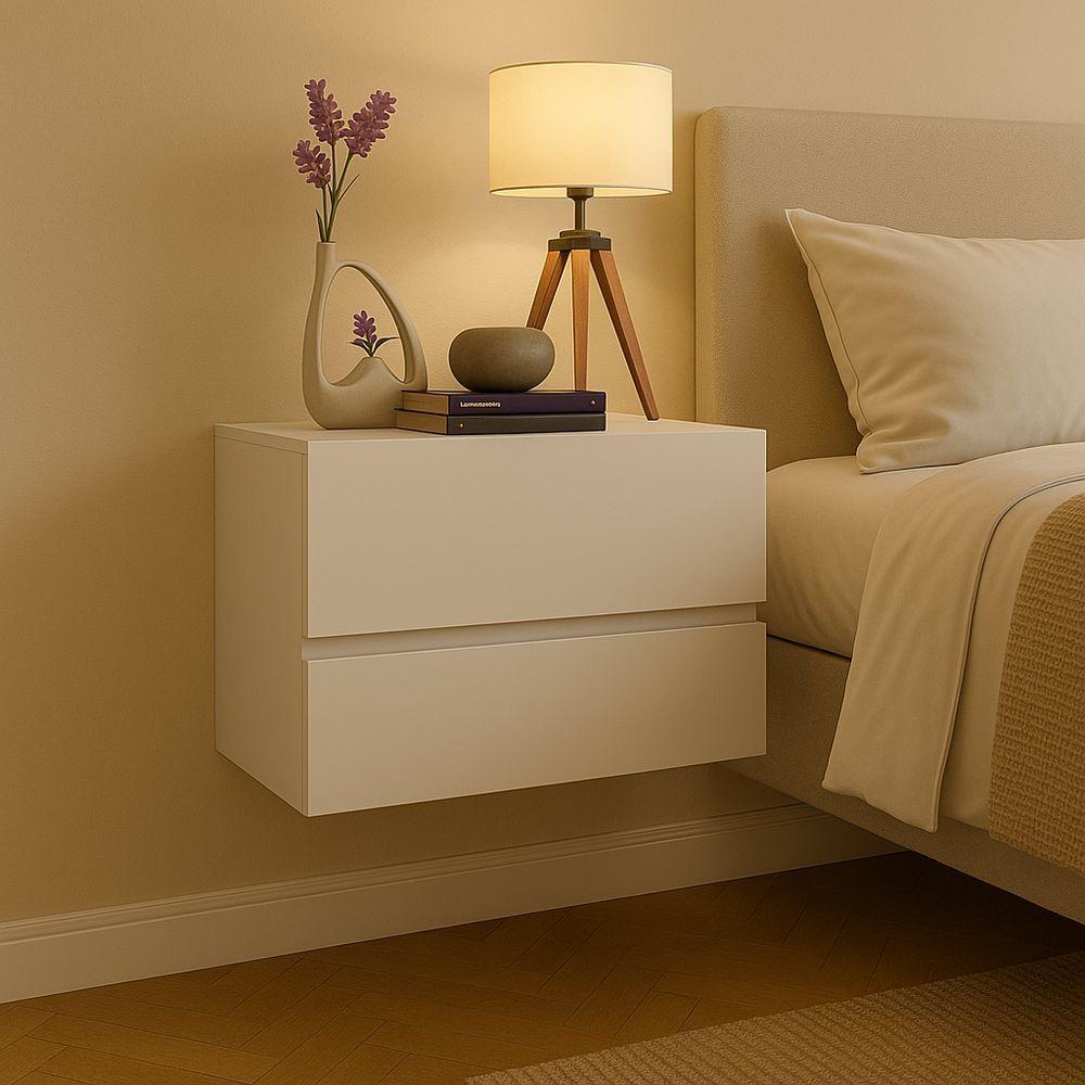 Mesa Suspensa Eros 45 P/ Quartos Pequenos Design Minimalista Cor:off WhiteMesa de Cabeceira Eros Suspensa 45cm – Design moderno e funcionalDeixe seu ambiente mais elegante com a Eros! Compacta e sofisticada, conta com duas gavetas espaçosas com corrediças telescópicas, que garantem abertura suave e durabilidade. Ideal para organizar com estilo!- Suspensa – mais leveza no ambiente- Acabamento em pintura UV- Estrutura em MDP/MDF- Gavetas que suportam até 5 kgDimensões: 45x37x43 cm (LxPxA)Manutenção e Limpeza: Limpeza com pano umedecido. Não aplicar produtos para lustrar móveis.Mesa de Cabeceira Eros Suspensa 45cm – Design moderno e funcionalDeixe seu ambiente mais elegante com a Eros! Compacta e sofisticada, conta com duas gavetas espaçosas com corrediças telescópicas, que garantem abertura suave e durabilidade. Ideal para organizar com estilo!- Suspensa – mais leveza no ambiente- Acabamento em pintura UV- Estrutura em MDP/MDF- Gavetas que suportam até 5 kgDimensões: 45x37x43 cm (LxPxA)Manutenção e Limpeza: Limpeza com pano umedecido. Não aplicar produtos para lustrar móveis.