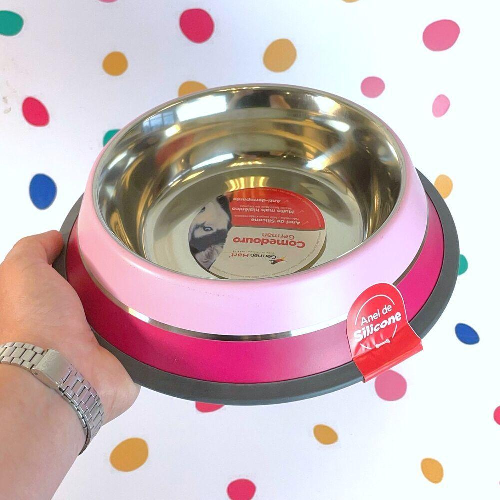 Conjunto De Comedouros Inox Duplo Rosa - 850ml Para Pets - GermanhartConheça o Conjunto de Comedouros Inox Duplo Rosa - 850ml para Pets da marca Germanhart, projetado especialmente para oferecer a melhor experiência alimentar para o seu bichinho de estimação. Este comedouro é a combinação perfeita entre inovação e qualidade, proporcionando não apenas funcionalidade, mas também um toque de estilo ao ambiente do seu lar.O comedouro é fabricado em aço inoxidável, um material reconhecido pela sua resistência e durabilidade. Isso garante que o produto mantenha sua aparência e integridade mesmo após longos períodos de uso. O anel de silicone é uma característica que destaca este item, pois não resseca e não racha, oferecendo segurança e conforto ao seu pet durante as refeições.A base larga do comedouro é um recurso essencial, projetada para preveni-lo de tombamentos e deslizamentos, garantindo que a hora das refeições seja tranquila. Com um design antiderrapante, você pode ter certeza de que o comedouro permanecerá no lugar, evitando bagunças indesejadas.A versatilidade deste conjunto é notável, pois conta com duas tigelas de 850ml cada, ideais para ração ou água. Além disso, os pigmentos usados na fabricação são seguros, assegurando que a saúde do seu pet esteja sempre em primeiro lugar. A limpeza é simplificada, uma vez que o comedouro é compatível com a lava-louça, tornando a sua rotina ainda mais prática.Estamos aqui para responder às suas dúvidas. Este produto não possui características de antiformiga, então é importante ficar atento ao ambiente onde será utilizado. É um item feito exclusivamente em aço inoxidável, proporcionando não apenas resistência, mas também facilidade na higienização, afinal, ela é fundamental para a saúde do seu pet.Adquira o Conjunto de Comedouros Inox Duplo Rosa e ofereça a seu melhor amigo a qualidade que ele merece. Lembrando que o produto possui um prazo para preparação e será despachado em até 2 dias úteis após a confirmação do pedido. Não deixe de garantir um produto que une praticidade, beleza e funcionalidade para o seu pet.