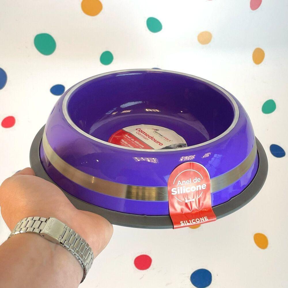 Conjunto De Comedouros Inox Antiderrapante 850ml - Edição Prestige RoxoA Germanhart é reconhecida por sua trajetória de inovação em produtos pet, desenvolvendo itens que proporcionam não apenas funcionalidade, mas também bem-estar e diversão para os animais de estimação. Apresentamos o Conjunto de Comedouros Inox Antiderrapante 850ml - Edição Prestige Roxo, uma solução prática e sofisticada que une qualidade e design em um único produto.Fabricado em aço inoxidável, o comedouro é projetado para ser super resistente e durável, garantindo um uso prolongado mesmo nas rotinas mais intensas. Seu material é fácil de limpar e pode ser colocado na lava-louça sem preocupações, facilitando a manutenção da higiene e da saúde do seu pet.O anel de silicone que acompanha o comedouro foi cuidadosamente desenvolvido para não ressecar e não rachar, oferecendo uma base que previne tombamentos e escorregamentos. Esta característica é essencial para garantir que a hora da alimentação seja tranquila e sem acidentes, permitindo que seu amigo desfrute da refeição com segurança. Tipo de produto: Comedouro Material: Aço inoxidável É antiderrapante: Sim Capacidade: 850ml Peso: 0,2kg Dimensões: 24,5 cm x 6,5 cm x 24,5 cmAlém disso, o comedouro vem com pigmentos seguros que não representam risco à saúde do seu animal. A Edição Prestige Roxo é perfeita para quem busca um toque de elegância, sem abrir mão da funcionalidade e do conforto que o seu pet merece.É importante mencionar que o produto possui um prazo para preparação e despachamos em até 2 dias úteis. Estamos sempre disponíveis para responder a quaisquer dúvidas que você possa ter sobre o nosso produto, garantindo que sua experiência de compra seja a melhor possível.