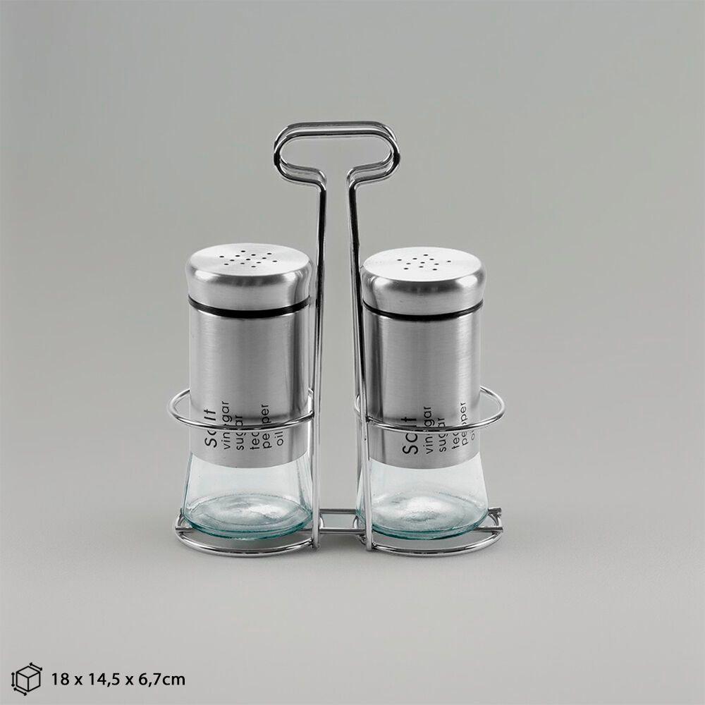 Conjunto De Saleiro E Pimenteiro Com Suporte Elegante Para Mesas E EventosO Conjunto de Saleiro e Pimenteiro com Suporte Elegante é a solução ideal para aqueles que buscam praticidade e sofisticação na hora de servir temperos à mesa. Com um design moderno e funcional, esse conjunto oferece uma maneira eficiente de armazenar e servir sal e pimenta, tornando o seu dia a dia mais agradável e organizado.Composto por um suporte que mantém as peças na posição correta, o conjunto garante estabilidade e charme ao ambiente. Este item não só enriquece a decoração da sua cozinha, mas também se destaca em eventos especiais e jantares mais elaborados, proporcionando um toque de elegância a cada refeição.Os potes são fabricados com vidro resistente e possuem tampa metálica durável, assegurando uma conservação eficiente dos temperos, evitando a umidade e preservando o aroma por mais tempo. Além disso, o design compacto das peças torna este conjunto perfeito para qualquer tipo de cozinha, independente do estilo ou espaço disponível.As especificações do produto incluem:Capacidade de 100ml, ideal para armazenar temperos;Medidas de cada pote: 11 x 5 x 5cm;Fácil de usar, limpar e recarregar;Multiuso, ideal para sal, pimenta e outros condimentos.O Conjunto de Saleiro e Pimenteiro não é apenas prático, mas também acrescenta um toque de classe ao seu serviço. Seja em um almoço em família ou em uma reunião com amigos, ele proporciona uma experiência de uso que combina beleza estética e funcionalidade.Investir neste conjunto é garantir que você está adquirindo um produto de qualidade da marca TRAZPRACA, que se destaca pela durabilidade e pelo design inteligente. Transforme suas refeições em momentos especiais com este conjunto que une elegância e praticidade.