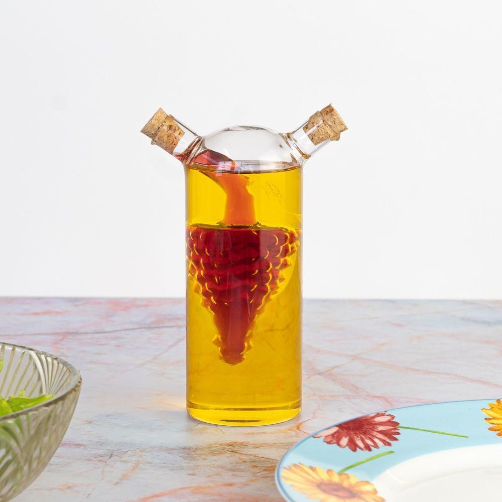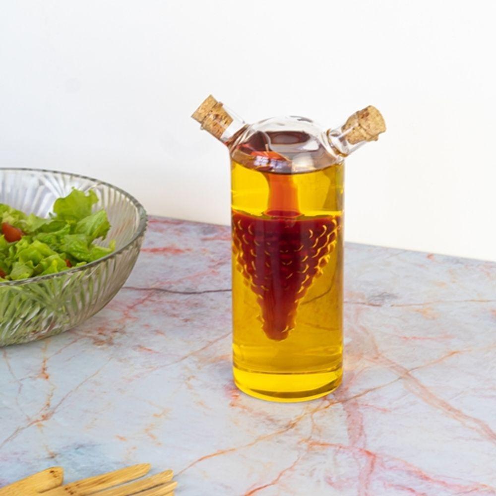 Galheteiro De Vidro 2 Em 1 Locked GrapeTransforme suas refeições em uma experiência sofisticada com o Galheteiro de Vidro 2 em 1 Locked Grape. Este acessório é a combinação perfeita entre estilo e funcionalidade, ideal para quem deseja adicionar um toque de elegância à mesa. Com um design inovador, ele permite a preparação e o serviço de óleo e vinagre de forma prática e atraente.O Galheteiro conta com um reservatório grande que possui uma capacidade de 350ml, ideal para armazenar o azeite de sua preferência, e um reservatório menor de 50ml, projetado especialmente para o vinagre. Essa configuração em dois volumes não só economiza espaço, mas também mantém a integridade de cada ingrediente, evitando que eles se misturem.Feito em vidro borossilicato, o material do Galheteiro é resistente e durável, garantindo que você possa utilizá-lo por muito tempo sem se preocupar com quebras. As dimensões de 17 x 6,5 x 6,5 cm tornam-no um item discreto que se adapta facilmente a qualquer configuração de mesa ou bancada de cozinha.A conservação do Galheteiro é simples e prática. Para mantê-lo sempre em ótimo estado, recomenda-se apenas o uso de sabão neutro e água durante a limpeza, evitando detergentes agressivos que possam danificar o material. O toque final fica por conta da tampa de rolha, que garante que seus temperos fiquem protegidos e sem vazamentos. Material: Vidro Borossilicato Dimensões: 17 x 6,5 x 6,5 cm Peso: 165g Capacidade reservatório maior: 350ml Capacidade reservatório menor: 50ml Uso: Azeite e VinagreO Galheteiro de Vidro 2 em 1 Locked Grape da marca TRAZPRACA é um item indispensável para os amantes de culinária e apreciadores de bons momentos à mesa. Elevando o padrão de suas refeições, este produto combina estética e praticidade, sendo ideal tanto para uso no dia a dia quanto para ocasiões especiais. Não perca a oportunidade de adquirir um item que não é apenas funcional, mas também um verdadeiro destaque decorativo.