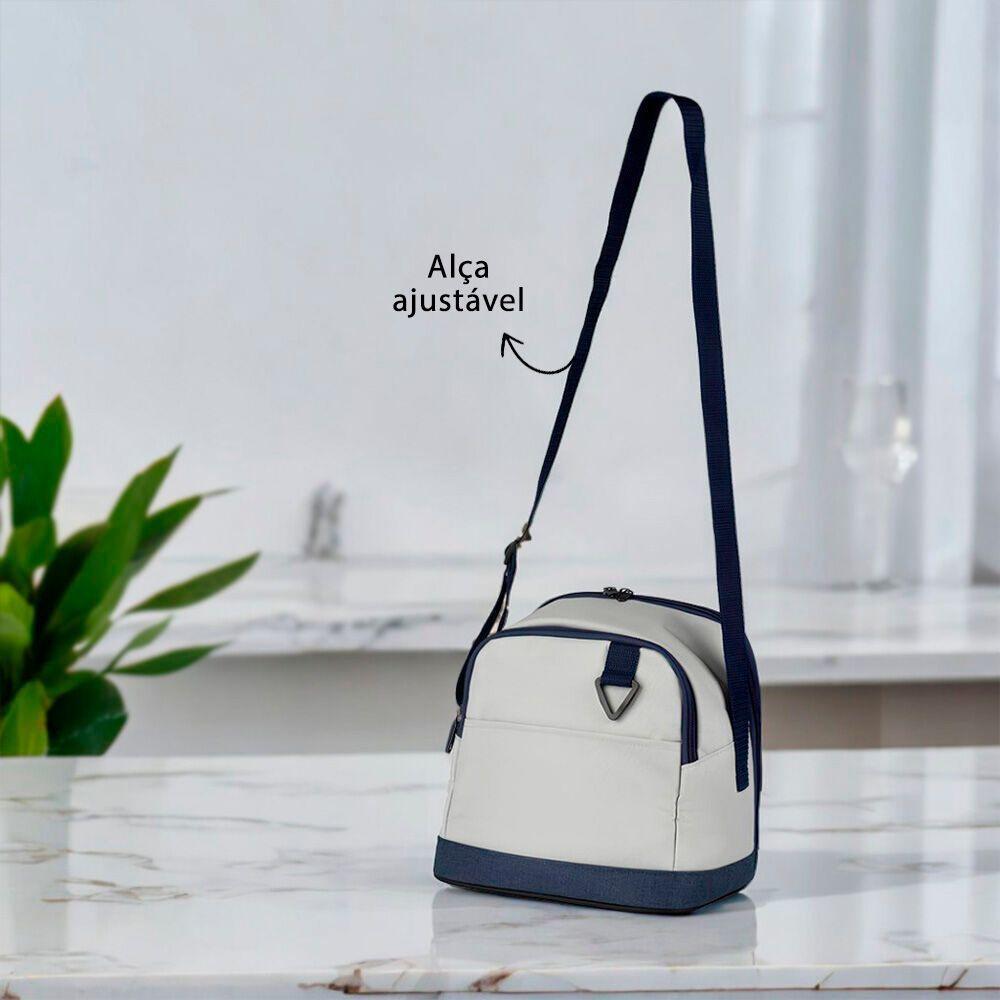 Bolsa Térmica Compacta 8l Para Marmitas Com Alça Azul - Ideal Para Transporte E ViagensBolsa térmica de 8 litros, ideal para transportar marmitas com praticidade e segurança. Com design compacto e material isolante de alta qualidade, mantém a temperatura dos alimentos por mais tempo, preservando sabor e frescor.Possui alça resistente para transporte confortável e fechamento reforçado para maior proteção. Visual discreto e elegante, ideal para o dia a dia no trabalho, viagens e delivery de alimentos.Perfeita para quem busca praticidade e eficiência na hora de levar refeições de forma segura e organizada.Especificações do produto:- Capacidade: 8 litros- Dimensões: 23 x 23 x 16cm- Peso: 0,25kg- Possui bolso frontal- Argola para chaves- Dois acessos para o compartimento interno- Alça com regulagem- Parte interna soldada para melhor conservação térmica