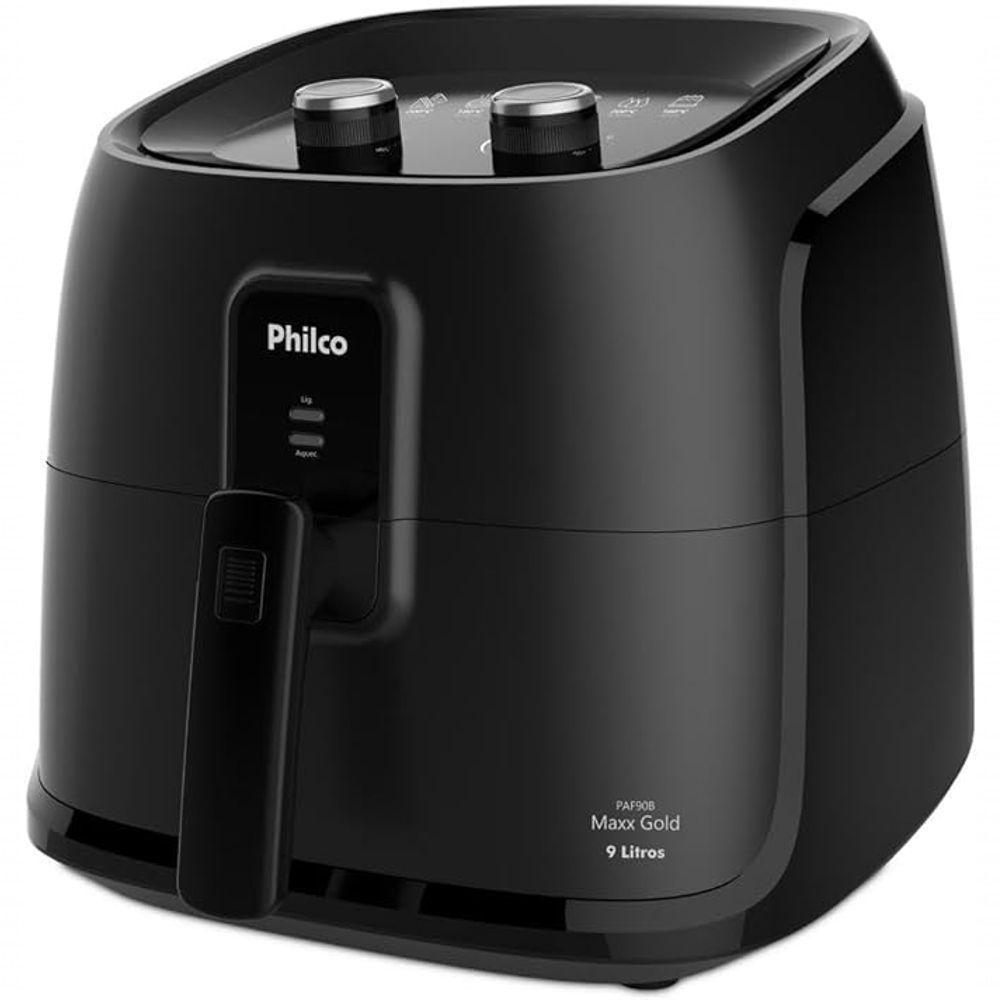 Air Fryer Philco Cesto Quadrado Gold 9L 2000W PAF90B 110VFritadeira Elétrica Sem Óleo Philco Air Fryer 9L Maxx Gold - PAF90BConheça seu novo aliado na cozinha: a Air Fryer Philco Maxx Gold! Com uma impressionante capacidade de 9 litros, ela garante o preparo de receitas para toda a família com facilidade. Os 2000W de potência oferecem rapidez e eficiência, enquanto o revestimento antiaderente Maxx Gold permite uma cozinha mais saudável, sem que os alimentos grudem.Principais Características:Super Capacidade de 9 Litros: O cesto quadrado com 9 litros de capacidade útil é perfeito para preparar grandes porções, ideal para refeições completas para toda a família.Alta Potência de 2000W e Tecnologia Air Flow: A combinação da alta potência com a tecnologia de circulação de ar quente em 360° garante um cozimento rápido e uniforme, deixando os alimentos crocantes por fora e macios por dentro.Revestimento Antiaderente Maxx Gold: O cesto removível possui o exclusivo revestimento antiaderente Gold, que é mais durável, evita que os alimentos grudem e facilita muito a limpeza.Controle Preciso de Temperatura e Tempo: O seletor de temperatura ajustável de 80°C a 200°C e o timer de 60 minutos com desligamento automático oferecem total controle para resultados perfeitos em cada prato.Segurança e Praticidade: Conta com luzes que indicam o funcionamento e o aquecimento, base antiderrapante e sistema de proteção contra superaquecimento.Especificações Técnicas:Marca: PhilcoModelo: Maxx Gold PAF90BVoltagem: 110V EAN: 7891356122750 (110V)Tipo: Fritadeira Elétrica Sem ÓleoCapacidade: 9 LitrosPotência: 2000WFaixa de Temperatura: 80°C a 200°CTimer: 60 minutosCor: PretoPeso: 5,7 kgDimensões [AxLxP]: 36 x 36,4 x 42 cmGarantia: 12 meses