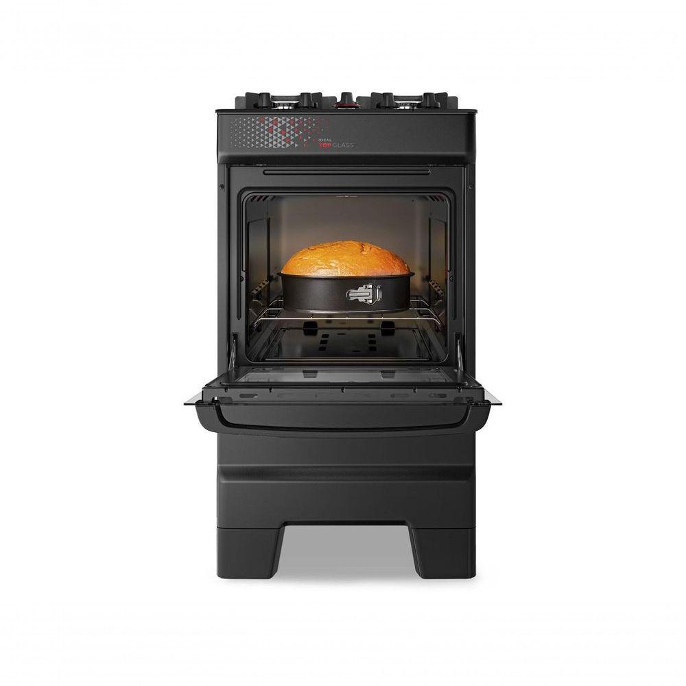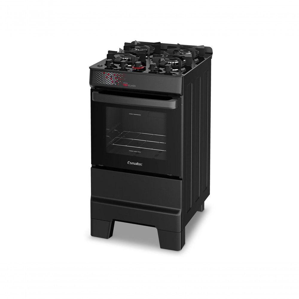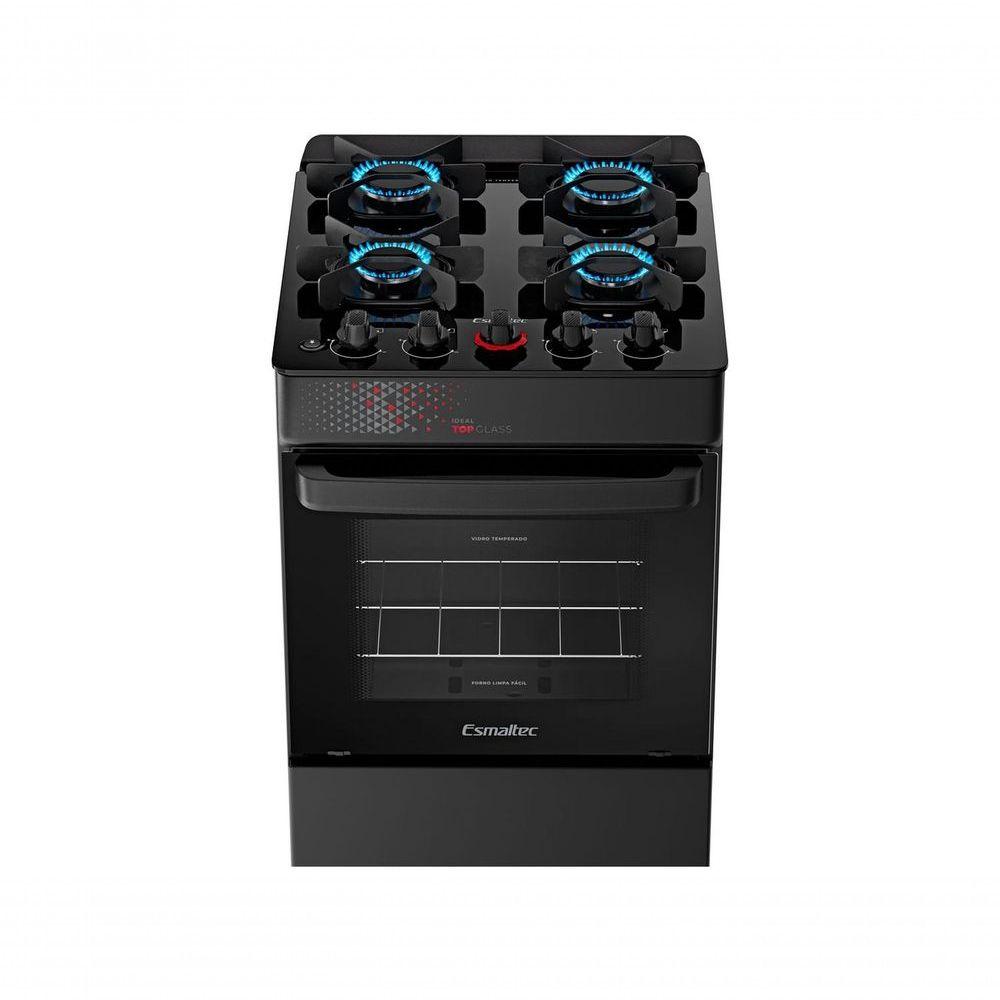 Fogão Esmaltec Ideal Top Glass 4 Bocas Automático Mesa De Vidro Preto Bivolt