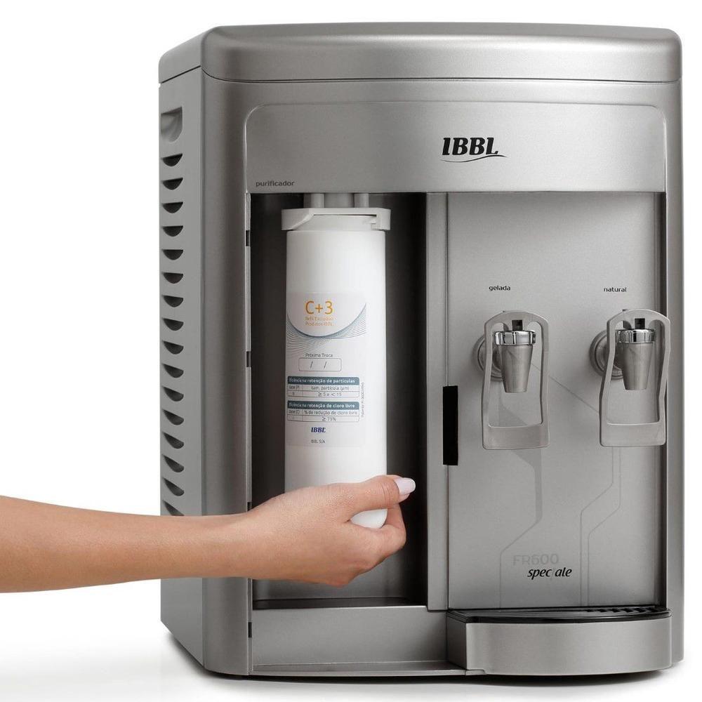 Purificador De Água IBBL 52072001 2,18 Litros Speciale FR600 Prata 220VTenha água pura e de qualidade com o Purificador de Água IBBL FR600 Spaciale. Com capacidade de 2,18 litros e vazão de 60 L/h, ele atende tanto ambientes residenciais quanto comerciais. Possui duas torneiras para maior eficiência.O purificador filtra as impurezas, reduz o teor de cloro, sabores e odores desagradáveis, garantindo uma água mais limpa e saborosa. O sistema de refrigeração por compressor permite que você tenha água gelada a qualquer momento.Com um design moderno e compacto, este purificador irá complementar seu espaço com sofisticação.Principais Características:- Eficiência e Qualidade da Água- Tipo de filtro: Natural- Eficiência de retenção de partículas: Classe C (5 a < 15 µm)- Redução de cloro livre: Aprovado- Bacteriostático: Aprovado- Eficiência bacteriológica: Não se aplica- Vida útil do filtro: 3.000 L ou até 6 mesesImagem meramente ilustrativa.Especificações Técnicas:Marca: IBBLModelo: FR600 SpacialeCor: PrataVoltagem: 220VConsumo de energia: 11 kWh/mêsPotência: 90WFrequência: 60HzCapacidade de fornecimento de água gelada: 1,24 L/hTemperatura de resfriamento: 10° C / 50° FRefrigeração: CompressorTermostato regulável: SimDimensões do produto (A x L x P): 410 x 312 x 357 mmPeso líquido: 10,6 kgPeso bruto: 11,33 kgGarantia: 12 meses
