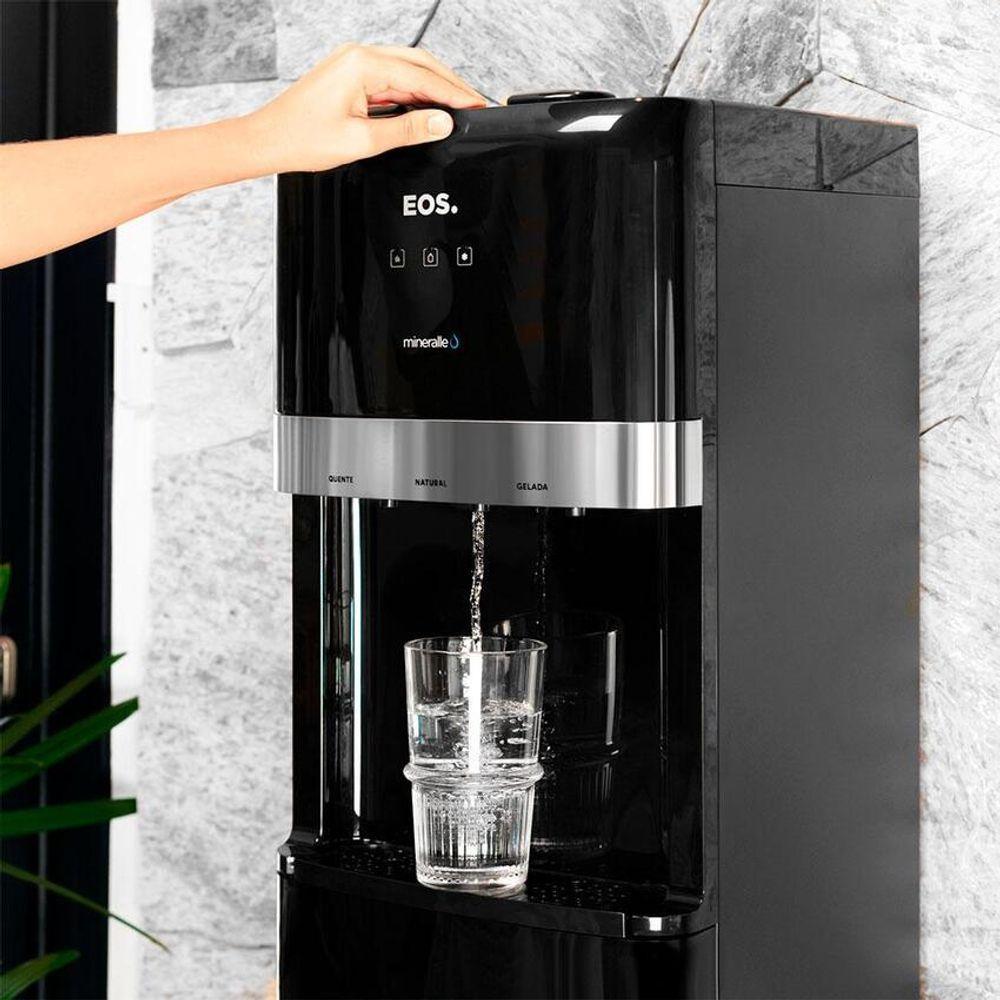 Bebedouro EOS Coluna Água Galão Embaixo Quente/Frio Compressor EBC02CP Preto 110VBebedouro de Coluna EOS Mineralle Quente e Frio com Compressor EBC02CP Preto 127VO Bebedouro de Coluna para Garrafão EOS Mineralle Quente e Frio com Compressor EBC02CP é a escolha perfeita para quem busca água sempre fresca — seja quente, gelada ou natural.Com design elegante e funcional, é ideal para uso em ambientes residenciais ou comerciais, oferecendo praticidade e conveniência no dia a dia.Compatível com garrafões de 10 ou 20 litros, o Bebedouro EOS Mineralle garante água disponível em diferentes temperaturas de acordo com suas preferências.Destaques do ProdutoCabine interna discreta:Projetada para acomodar o garrafão de forma segura e organizada, evitando exposição desnecessária e mantendo o ambiente sempre limpo.Refrigeração por compressor:Utiliza gás ecológico que garante eficiência e confiabilidade, proporcionando água gelada mesmo nos dias mais quentes.Função quente e fria:Ideal para preparar bebidas ou aquecer alimentos de forma rápida e prática.Design moderno:Acabamento sofisticado que combina com qualquer ambiente — casa, escritório, academia ou comércio.Eco-friendly:Compressor com gás ecológico que não agride o meio ambiente.Silencioso:Nível baixo de ruídos e vibrações, garantindo conforto acústico.Especificações TécnicasModelo: EBC02CP – PretoFabricante: EOSCategoria: BebedouroTipo: Bebedouro de ColunaTipo de Instalação: ColunaÁgua: Quente, Natural e GeladaRefrigeração: Por compressorGás Refrigerante: R134aConsumo: 10,0 kWh/mêsCapacidade de Refrigeração: 1,6 L/hTemperatura da Água Gelada (verão): 10°CPotência: 420W (aquecimento) / 85W (refrigeração)Frequência: 60 HzVoltagem: 127V ou 220V (Não é Bivolt)Cor: PretoDimensões e PesoMedidas (L x A x P): 31,0 x 103,5 x 35,0 cmPeso Líquido: 14 kgCódigos e GarantiaEAN 127V: 7898735985364EAN 220V: 7898735985357Garantia: 12 meses