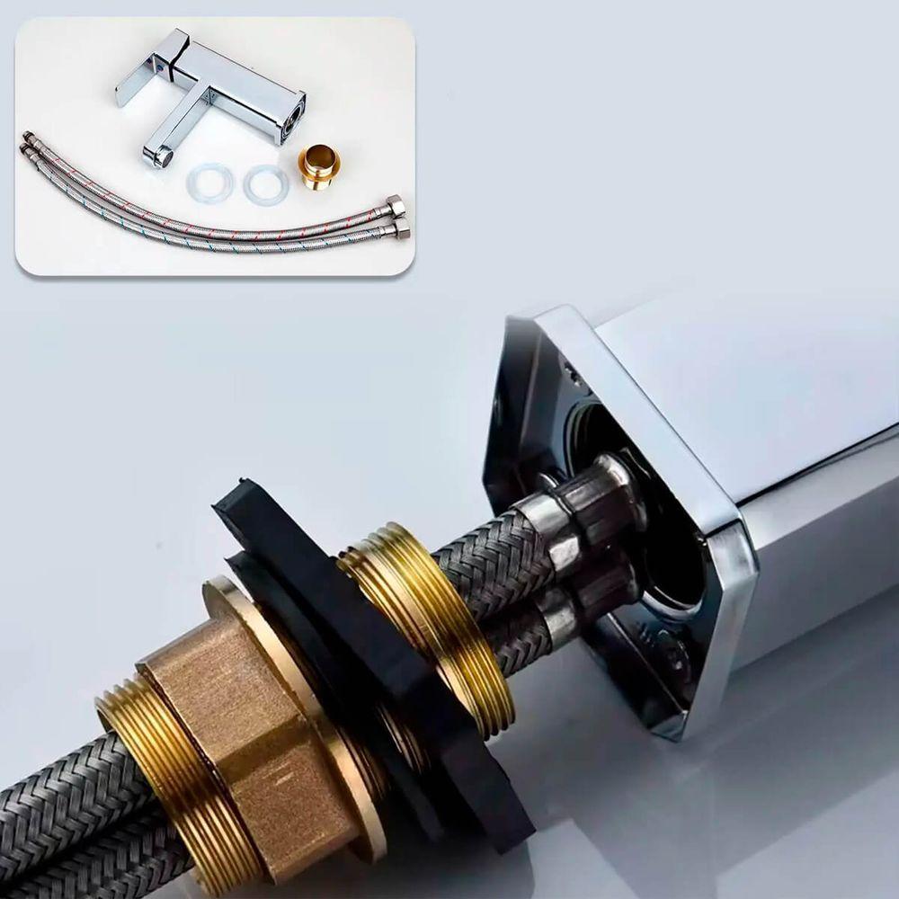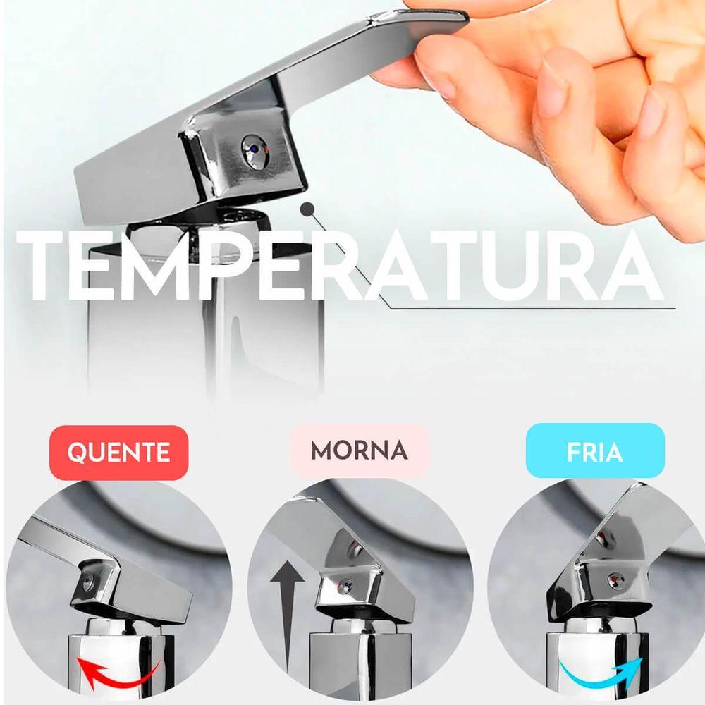 Torneira Monocomando Banheiro Lavatório Baixa Aço Inox PrataA Torneira Lavatório Monocomando Misturador é a escolha perfeita para quem busca funcionalidade, durabilidade e design moderno. Fabricada em Aço Inoxidável 304, esta torneira combina resistência à corrosão e fácil manutenção, garantindo uma longa vida útil. Seu sistema monocomando permite controlar a temperatura e o fluxo de água com precisão, enquanto o mecanismo de 1/4 de volta assegura praticidade e suavidade no uso. Ideal para lavatórios em banheiros, lavabos ou áreas de , a torneira é leve, funcional e perfeita para compor ambientes com elegância e eficiência.Características:Material Premium: Fabricada em Aço Inoxidável 304, oferecendo resistência à corrosão e durabilidade superior. Sistema Monocomando: Controle total de temperatura e fluxo de água com apenas uma alavanca. Mecanismo de 1/4 de Volta: Fácil manuseio e maior durabilidade do sistema interno. Design Moderno: Linha clean e elegante, ideal para lavatórios sofisticados.Especificações Técnicas:Material: Aço Inoxidável 304 Peso: 680g Mecanismo: 1/4 de volta Indicação de Uso: Banheiros, lavabos e áreas de Itens Inclusos:1x Torneira Lavatório Misturador Monocomando 2x Mangueira ível para instalação Acessórios para instalação