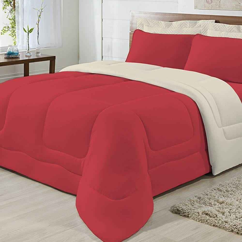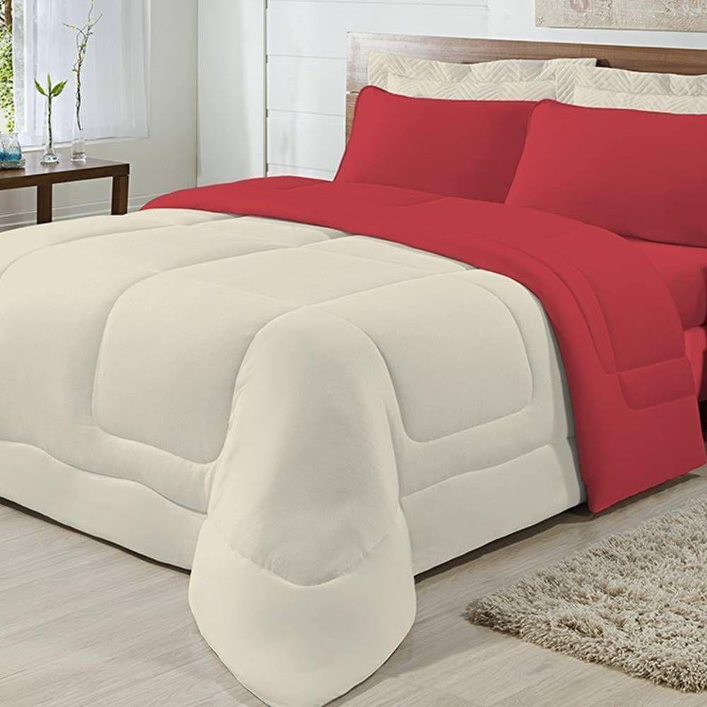 Edredom Dupla Face 100% Algodão Malha Queen Gran Moratta 01 Peça - Palha- Vermelho