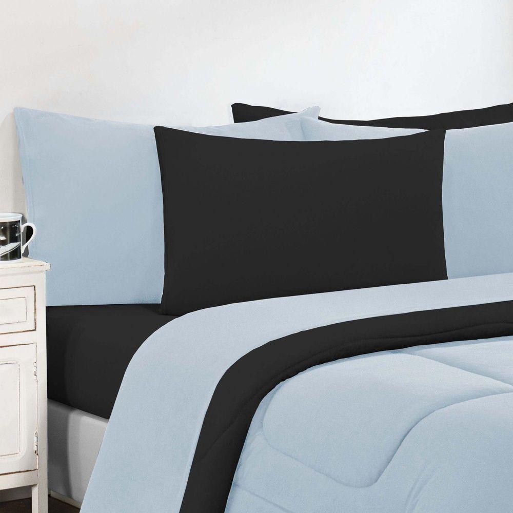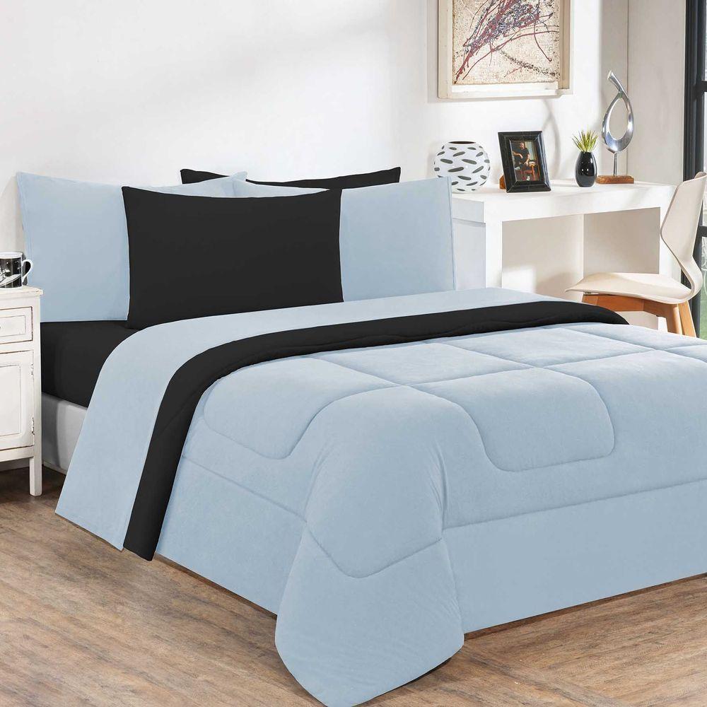 Kit Edredom + Jogo De Lençol Malha 100% Algodão Gran Moratta 6 Peças Casal - Azul Bebê/pretoO Kit Edredom Gran Moratta possui tecido Malha 100% algodão, toque macio.A combinação perfeita para suas noites de sono!Produto composto por:01 Edredom Casal Dupla Face Liso 2,00m x 2,20m02 Porta Travesseiros 70cm x 50cm01 Lençol Casal Avulso de Baixo para colchão 1,38x1,98x0,30 (Elástico na volta toda)02 Fronhas 50cm x 70cmComposição:Malha 100% Algodão Fio 30/1 (130 Gramas)Enchimento 100% Poliéster (120 Gramas)Lençol e FronhasComposição:Malha 100% Algodão Fio 30/1 (130 Gramas)