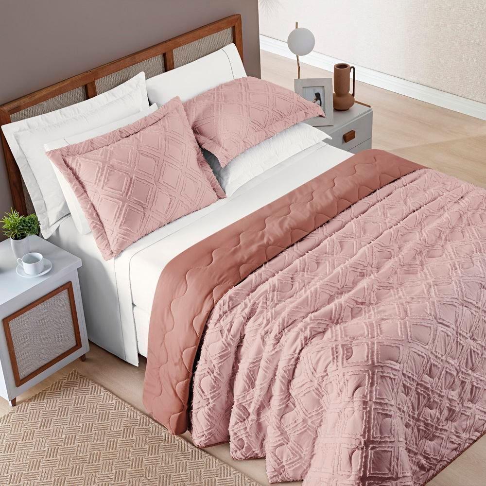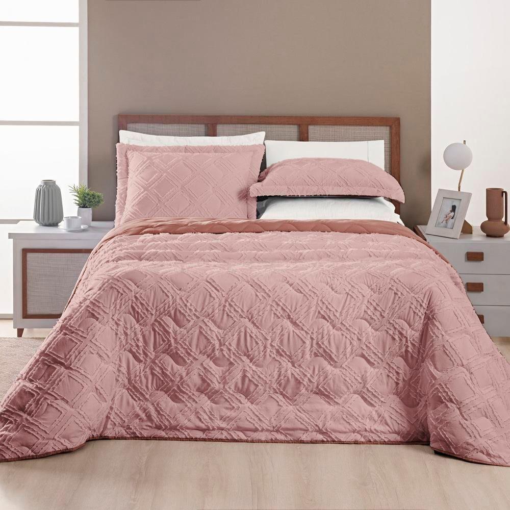 Cobre Leito Aveline Casal Padrão 03 Peças - Rosê
