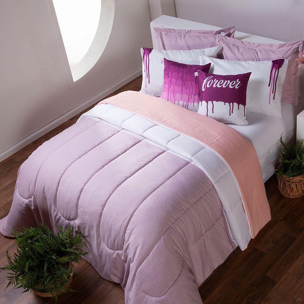 Kit Edredom Linho Colorful Casal King 5 Peças 100% Poliéster - Rosa