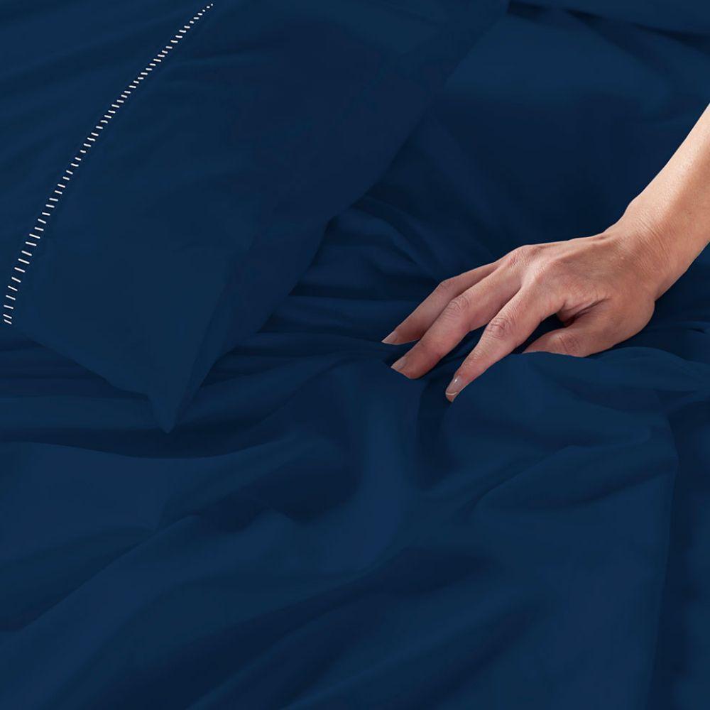 Jogo De Lençol Casal Padrão 3 Peças Laura 400 Fios 100% Poliéster - Azulmarinho