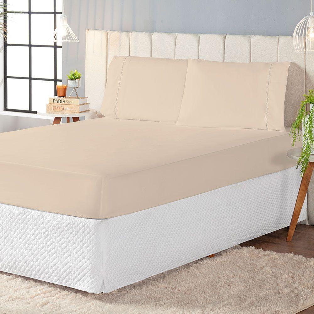 Jogo De Lençol Casal Queen 3 Peças Laura 400 Fios 100% Poliéster - Cáqui