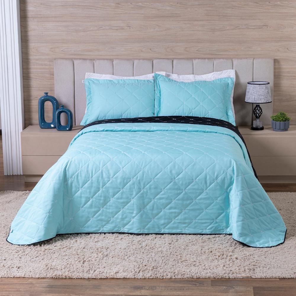 Kit Cobre Leito Dupla Face Casal King 3 Peças Bordado Essence Hipercal 400 Fios 100% Poliéster - Verde Tiffany