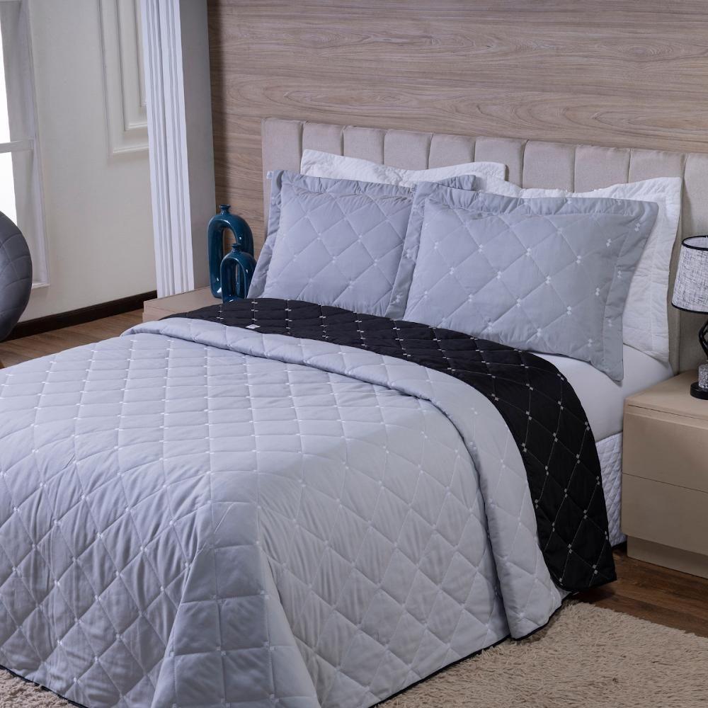 Kit Cobre Leito Dupla Face Casal Padrão 3 Peças Bordado Essence Hipercal 400 Fios 100% Poliéster - Cinza