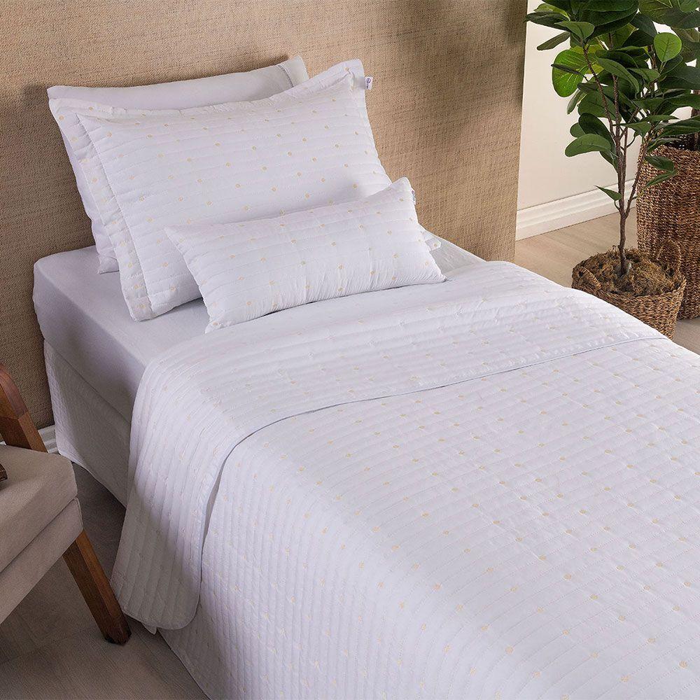 Kit Cobre Leito Solteiro + Almofada 4 Peças Bordado Urbany Hipercal 400 Fios 100% Poliéster - Branco