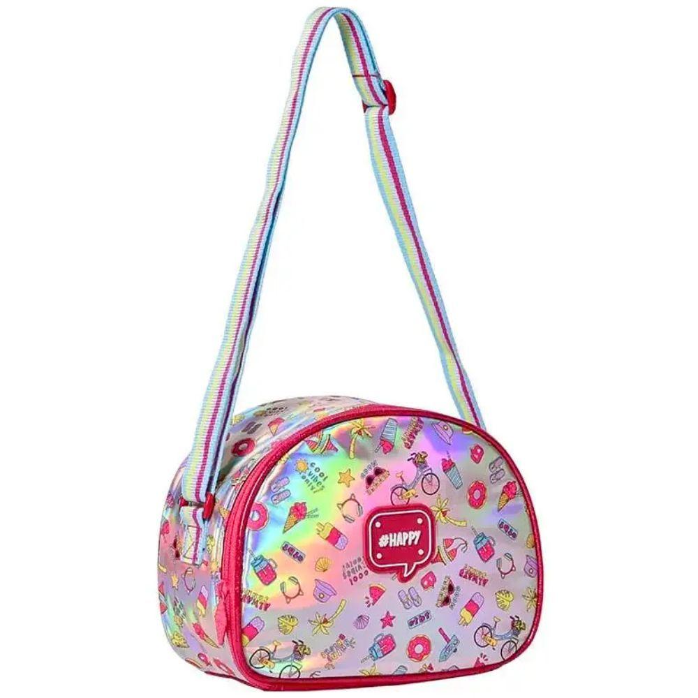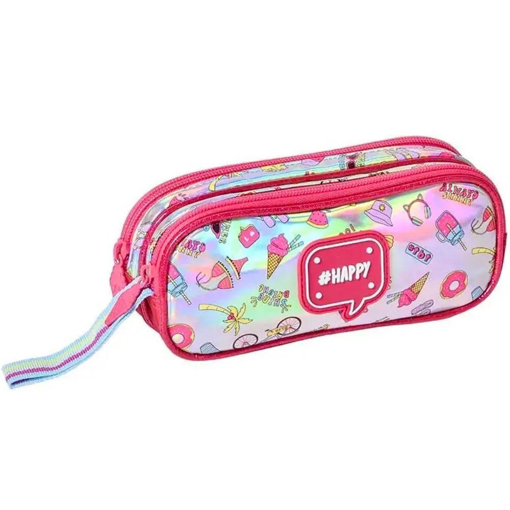 Kit Mochila De Rodinhas + Lancheira Térmica + Estojo Duplo Happy Clio Rosa