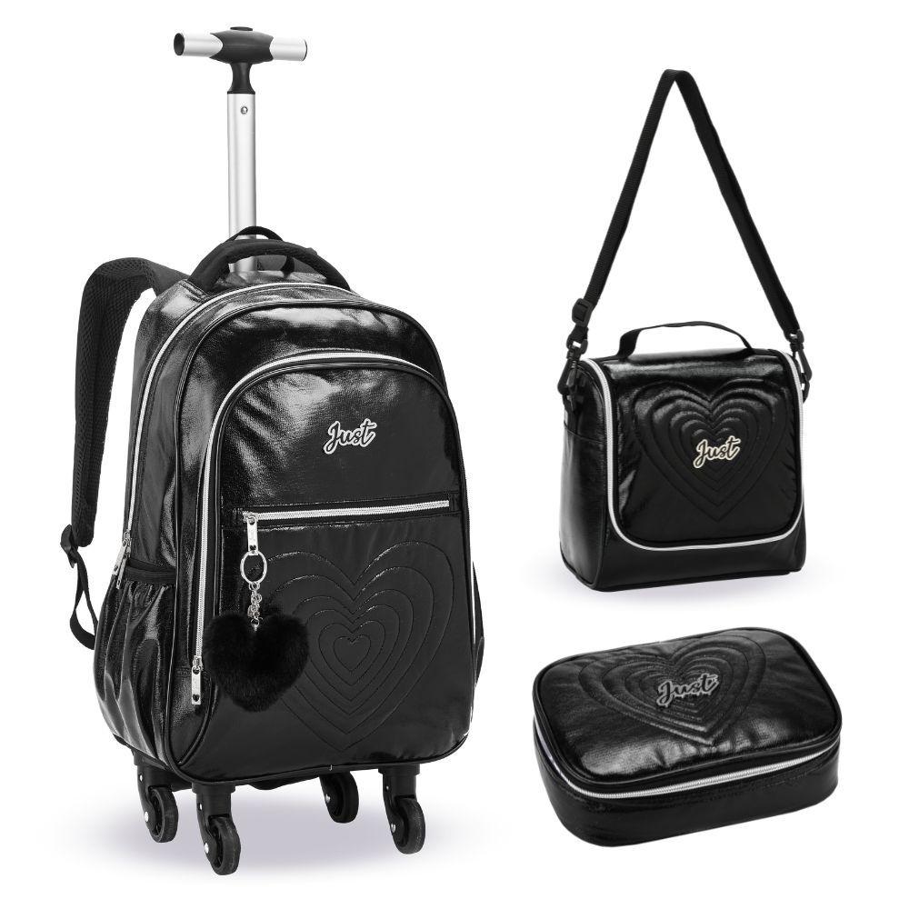 Kit Mochila De Rodinhas + Lancheira + Estojo Love Just Denlex Preta