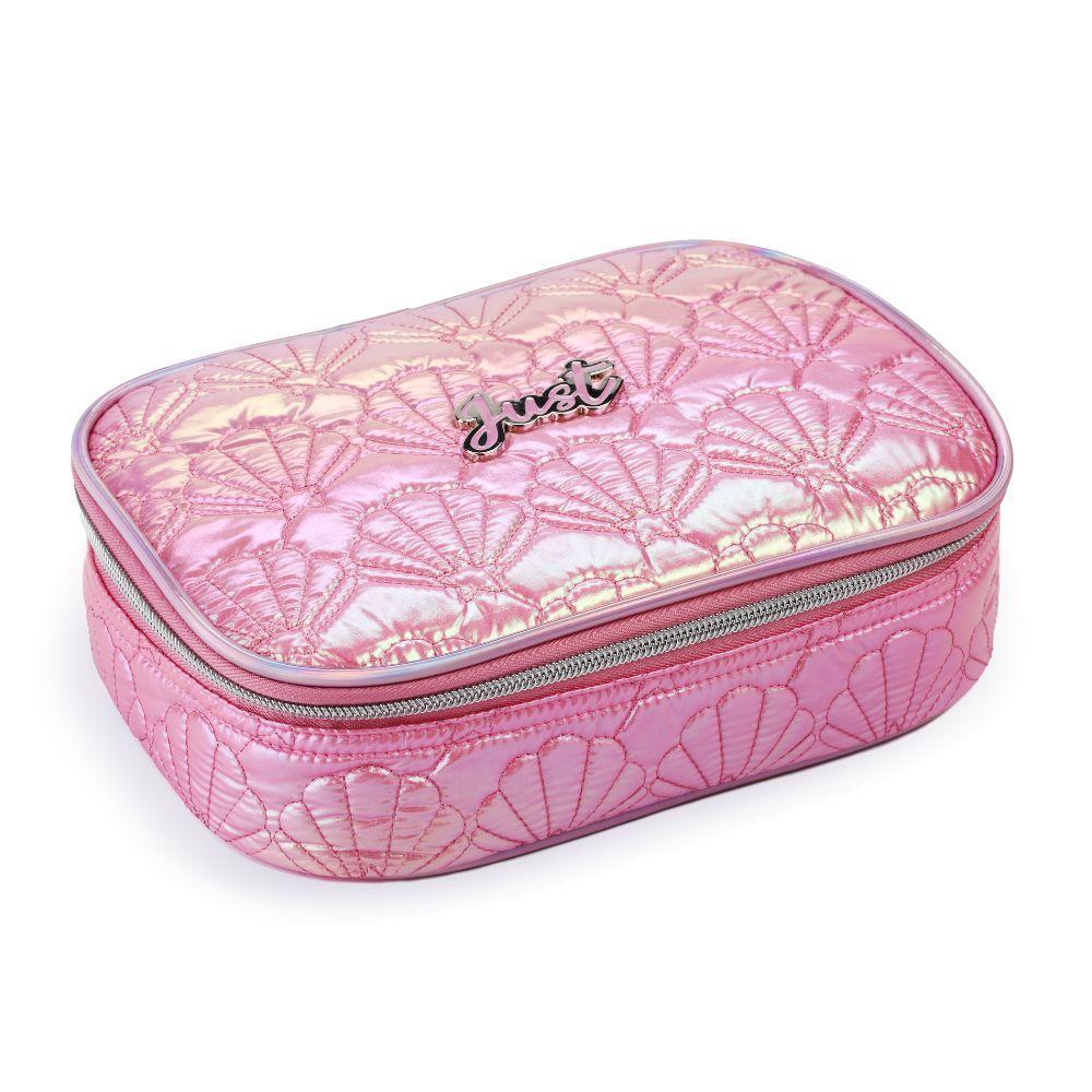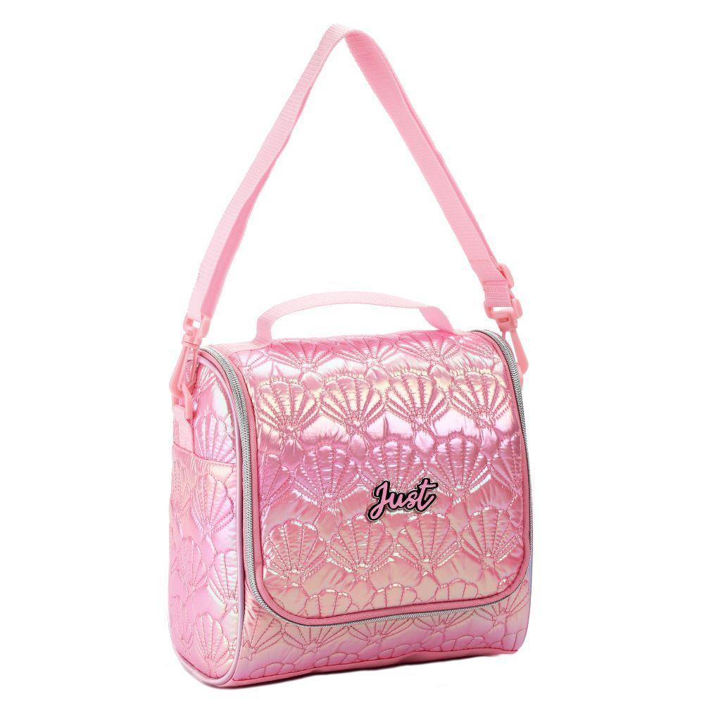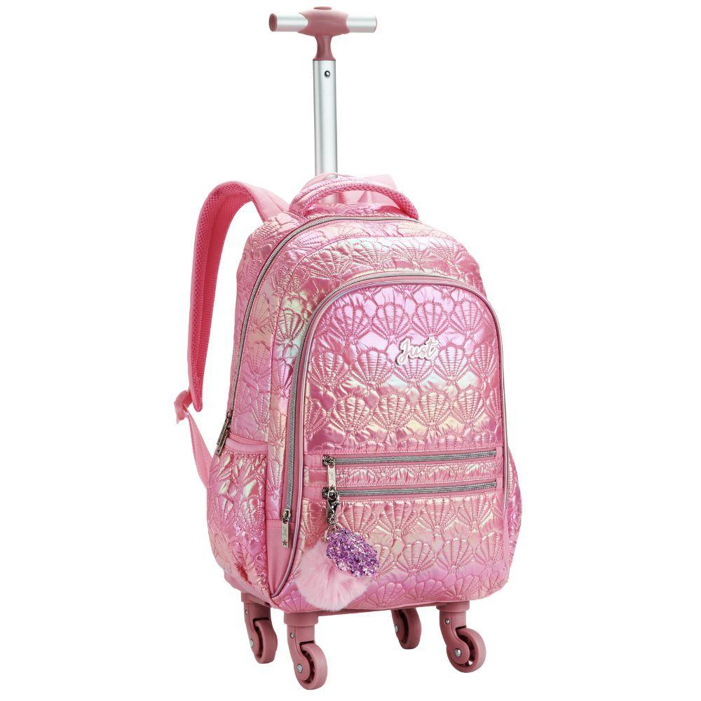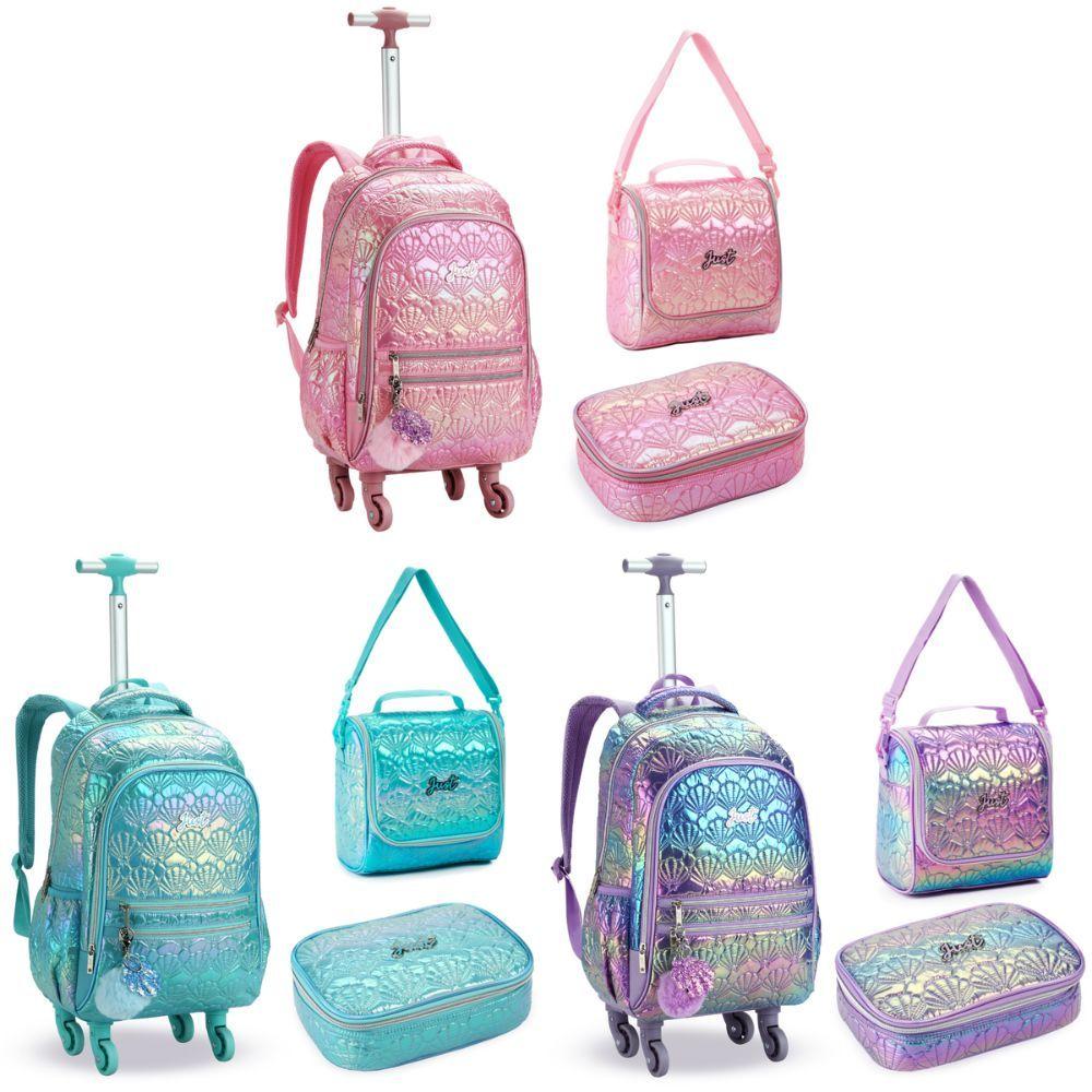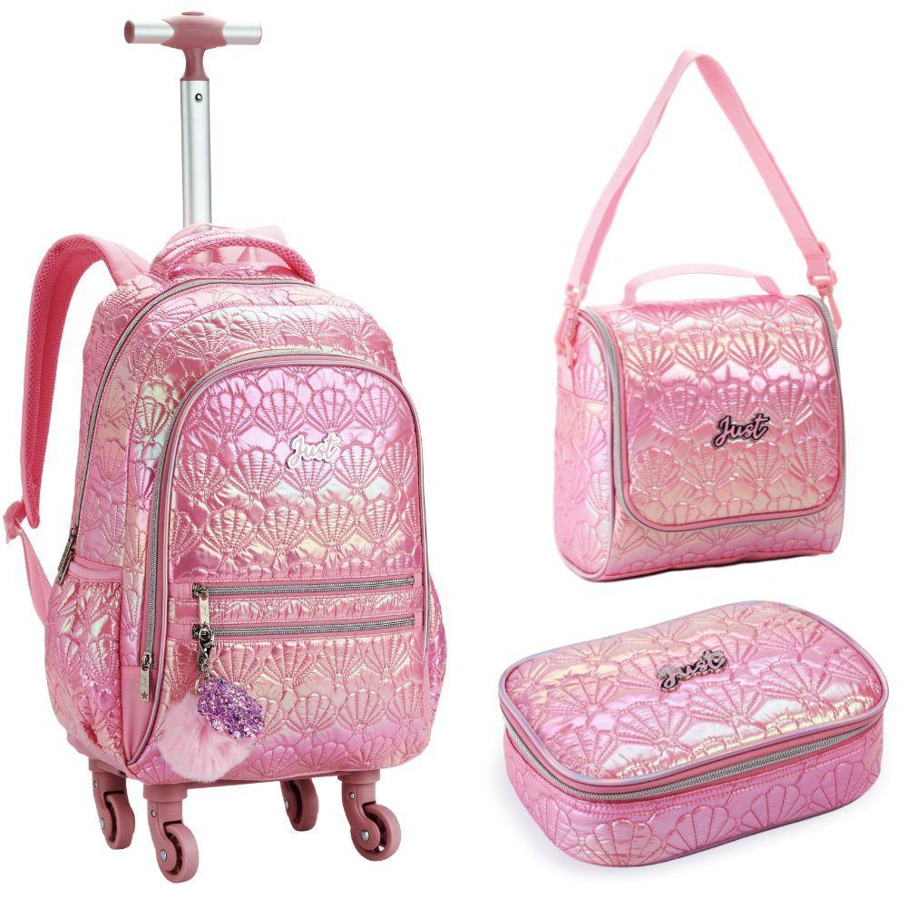 Kit Mochila De Rodinhas + Lancheira + Estojo Concha Praia Love Just Denlex Rosa